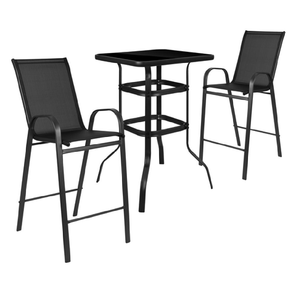 Flash Furniture TLH-073H092H-B-GG Outdoor Dining Set 2-person Bistro Set (1) Glass Bar Table - 1/Set