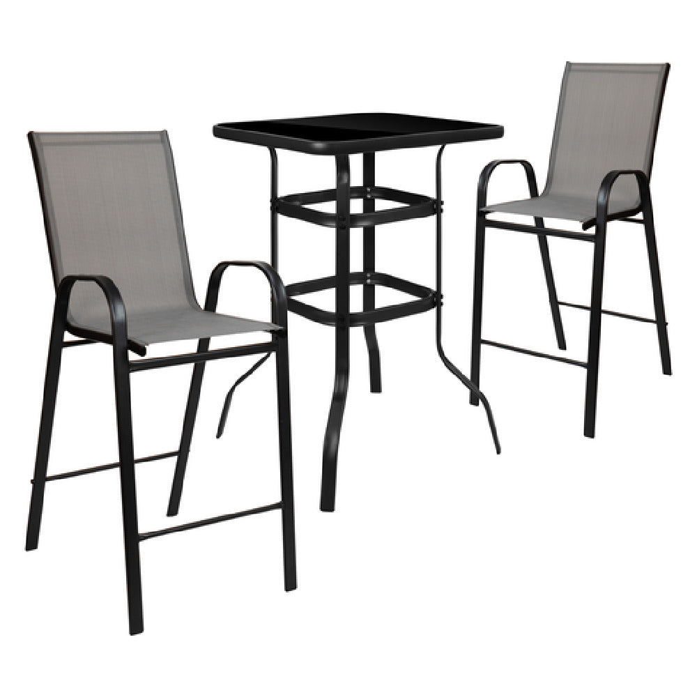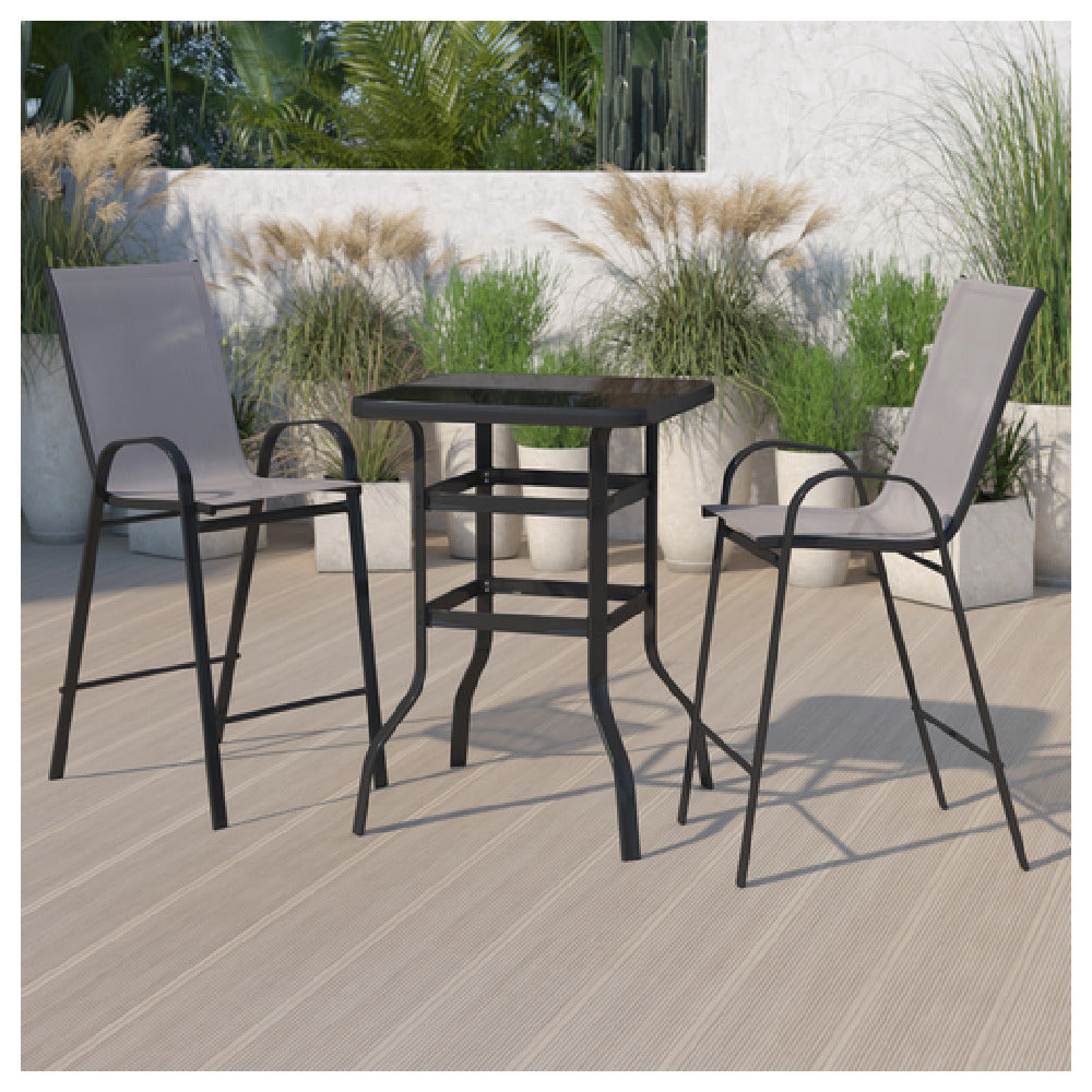Flash Furniture TLH-073H092H-GR-GG Outdoor Dining Set 2-person Bistro Set (1) Glass Bar Table - 1/Set