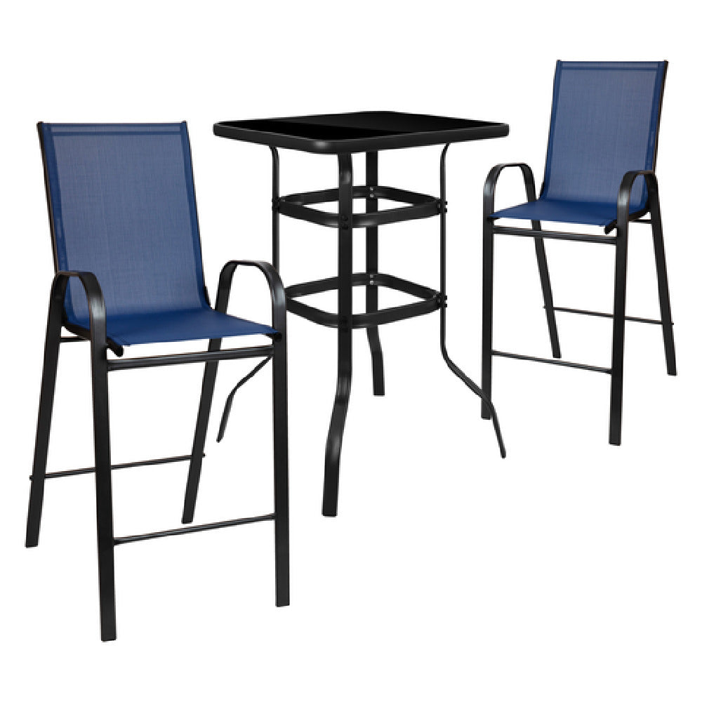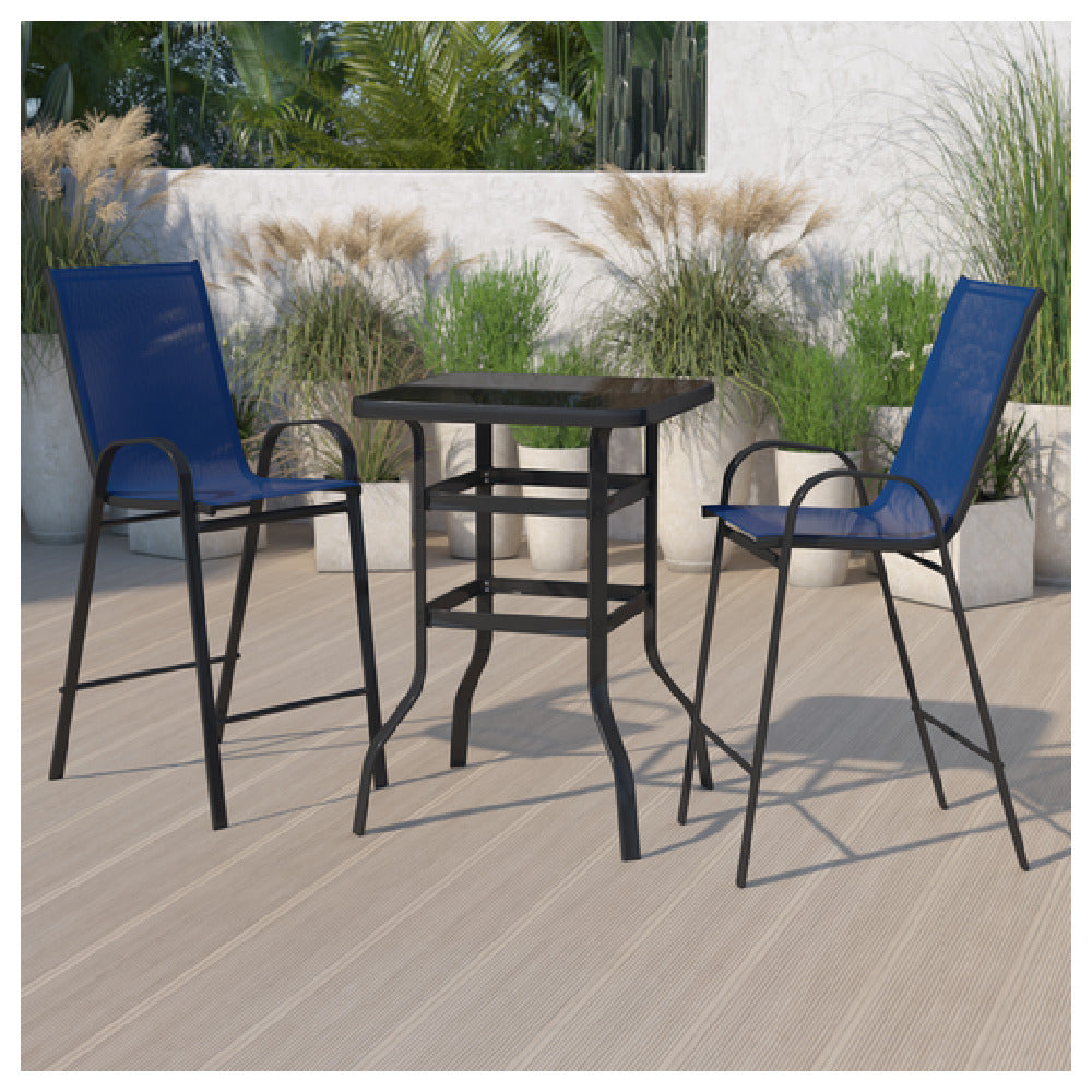 Flash Furniture TLH-073H092H-NV-GG Outdoor Dining Set 2-person Bistro Set (1) Glass Bar Table - 1/Set