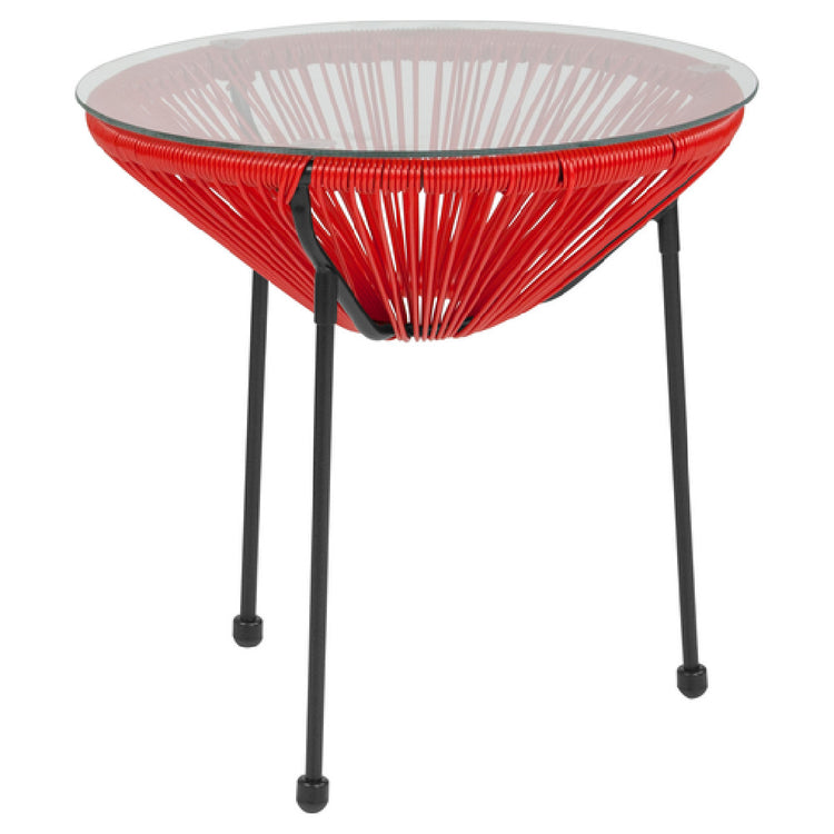 Flash Furniture TLH-094T-RED-GG Valencia Oval Comfort Series Take Ten Red Rattan Table With Glass Top [TLH-094T-RED-GG]