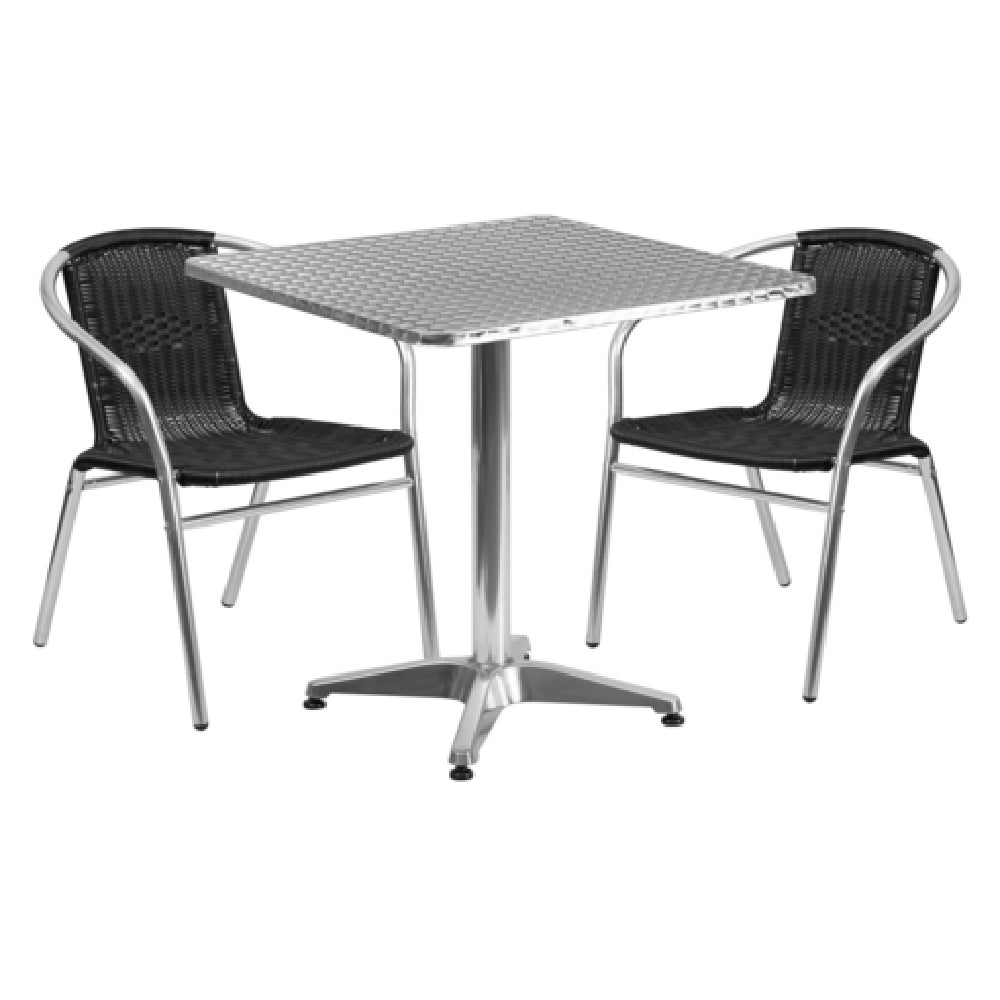 Flash Furniture TLH-ALUM-28SQ-020BKCHR2-GG Table & Chair Set Includes (1) 27-1/2"W X 27-1/2"D X 27-1/2"H Table - 1/Set