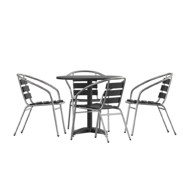 Flash Furniture TLH-ALUM-32RD-017BK4-GG Lila Table & Seat Set 31-1/2" Dia. Round Metal Table