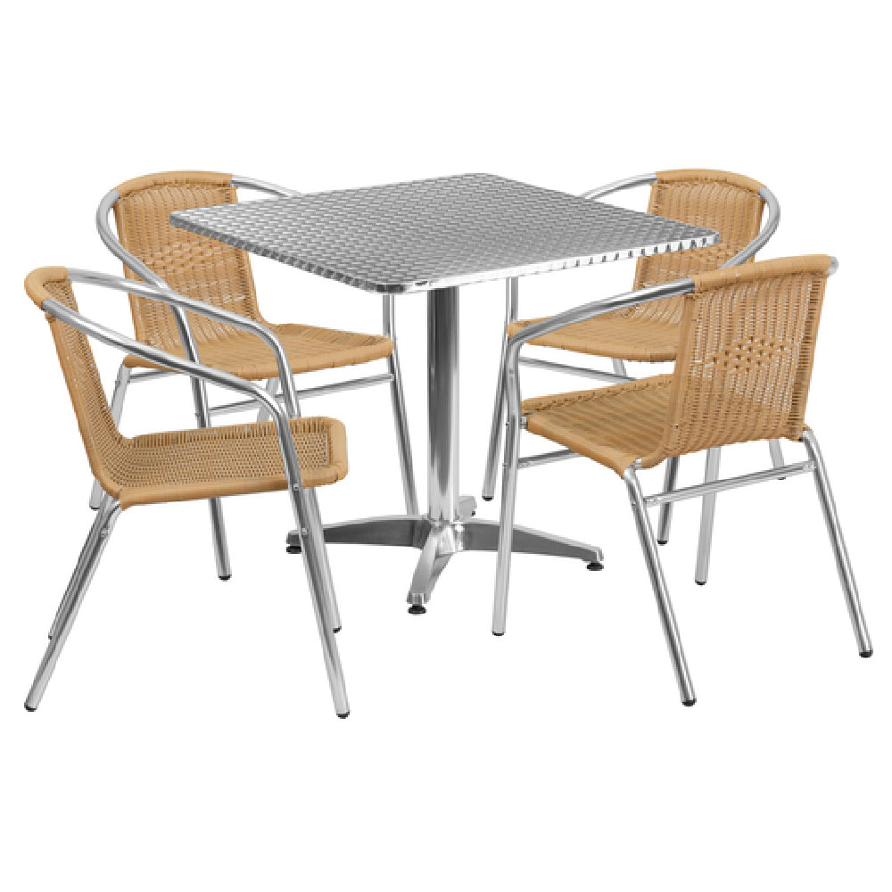 Flash Furniture TLH-ALUM-32SQ-020BGECHR4-GG Table & Chair Set Includes (1) 31-1/2"W X 31-1/2"D X 27-1/2"H Table - 1/Set