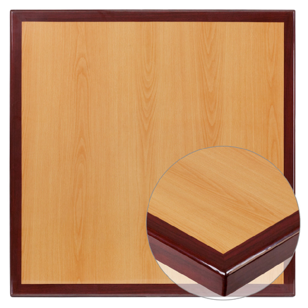 The Flash Furniture TP-2TONE-3030-GG Table Top Square 30"W x 30"D is a meticulously crafted surface designed to fulfill a variety of commercial needs. Its square dimensions, measuring 30 inches in width and depth, provide an ample workspace suitable for diverse applications within industries such as hospitality, retail, and dining establishments. The table top is distinguished by its 2-inch thick drop-lip, which enhances its structural integrity and aesthetic appeal. The high gloss resin finish not only offers a sleek appearance but also ensures durability and easy maintenance, making it ideal for high-traffic environments. The combination of a cherry finish with mahogany edges provides a sophisticated contrast that can complement various interior designs. Specifically engineered for commercial use, this table top is both functional and stylish, and available for quick shipping, with in-stock items dispatched within 24 hours. This attention to design detail and practicality makes the Flash Furniture TP-2TONE-3030-GG Table Top a valuable investment for businesses seeking a reliable and visually pleasing solution to meet their operational and aesthetic requirements.