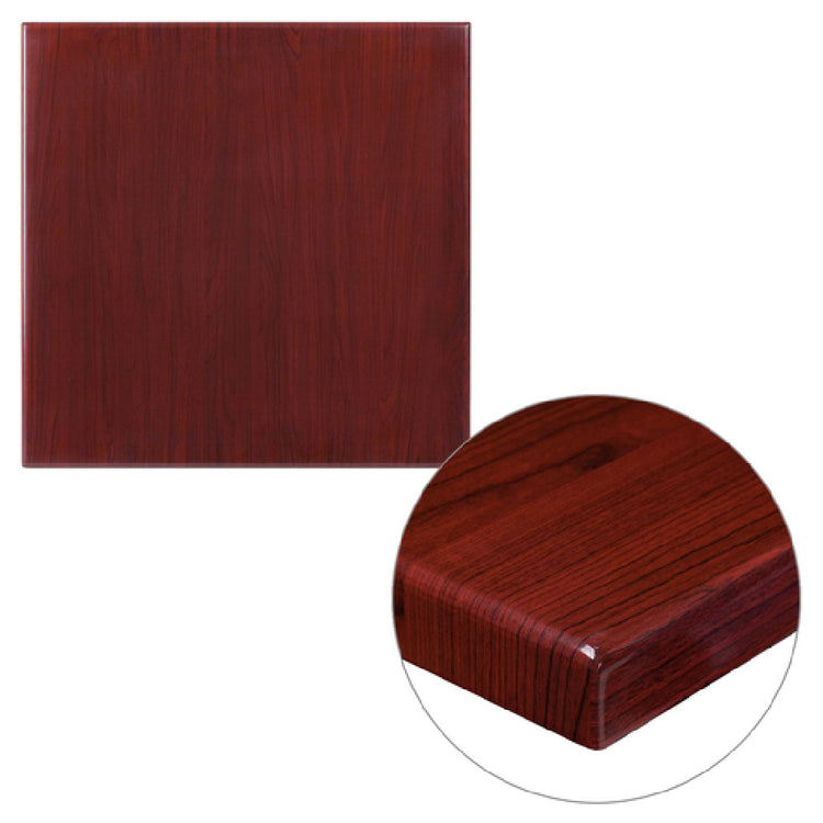 Flash Furniture TP-MAH-2424-GG Table Top Square 24"W X 24"D is a versatile and robust solution designed for commercial use. Its dimensions of 24 inches in width and 24 inches in depth provide a compact yet functional space, ideal for various settings such as restaurants, cafes, and offices. The table top is 2 inches thick and features a drop-lip design, offering an elegant and sturdy construction. The high gloss resin finish not only adds a sophisticated mahogany aesthetic but also ensures durability and easy maintenance. This product is thoughtfully engineered to meet the demands of high-traffic environments, promising both resilience and style. With its mahogany finish, it seamlessly integrates into diverse interior decors, enhancing visual appeal. The TP-MAH-2424-GG is readily available, with in-stock items that ship within 24 hours, ensuring quick and efficient service for businesses that require immediate solutions. This table top is a practical choice for establishments seeking quality, durability, and a touch of elegance in their furnishing needs.