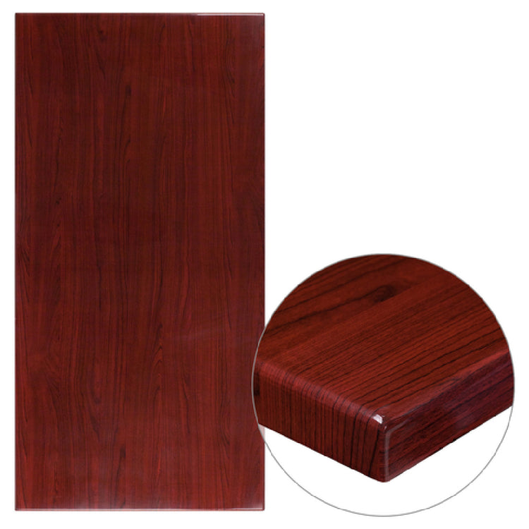 The Flash Furniture TP-MAH-3060-GG Table Top Rectangular 60"W X 30"D is a meticulously crafted product designed to meet the demands of commercial environments with finesse and durability. Measuring a substantial 60 inches in width and 30 inches in depth, this table top provides ample surface space suitable for a variety of uses, from dining to workstations. Its 2-inch thick drop-lip adds a touch of elegance while enhancing the table's structural integrity. The high gloss resin finish not only contributes to its mahogany aesthetic but also offers a protective layer that enhances longevity and eases maintenance. This product is particularly advantageous for commercial settings, as its robust construction is complemented by a sophisticated design that suits a range of interior styles. With a commitment to prompt delivery, in-stock items of the TP-MAH-3060-GG ship within 24 hours, making it an efficient choice for businesses needing quick setup or replacement. The versatile nature of this table top aligns it with various market segments within the industry, offering a reliable and stylish solution for restaurants, offices, and institutional settings seeking quality furnishings that blend functionality with aesthetic appeal.