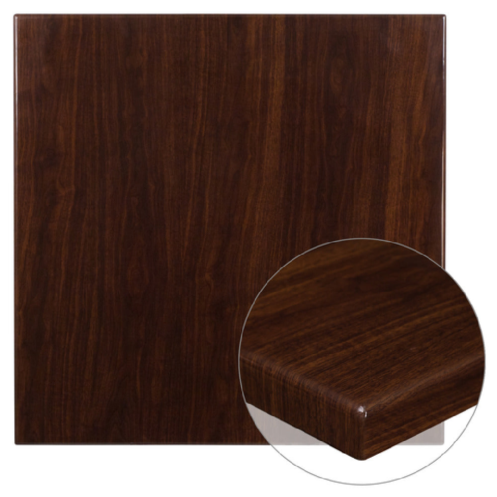The Flash Furniture TP-WAL-3636-GG Table Top Square 36"W X 36"D is crafted with precision to cater to a range of commercial needs. This table top measures 36 inches in width and 36 inches in depth, offering ample space for various applications across different sectors, such as restaurants, cafes, and conference rooms. Its high gloss resin finish not only adds sophistication but also ensures durability, making it an attractive yet resilient choice for heavy-duty environments. The 2-inch thick drop-lip design enhances its structural integrity while providing a seamless, polished edge. This walnut-finished table top is engineered for commercial use, underscoring its capacity to withstand the rigors of busy settings. Notably, Flash Furniture prioritizes customer satisfaction with in-stock items ready to ship within 24 hours, ensuring quick and efficient delivery. The TP-WAL-3636-GG seamlessly combines style and functionality, making it a smart investment for businesses aiming to enhance their interior aesthetics without compromising on practicality.