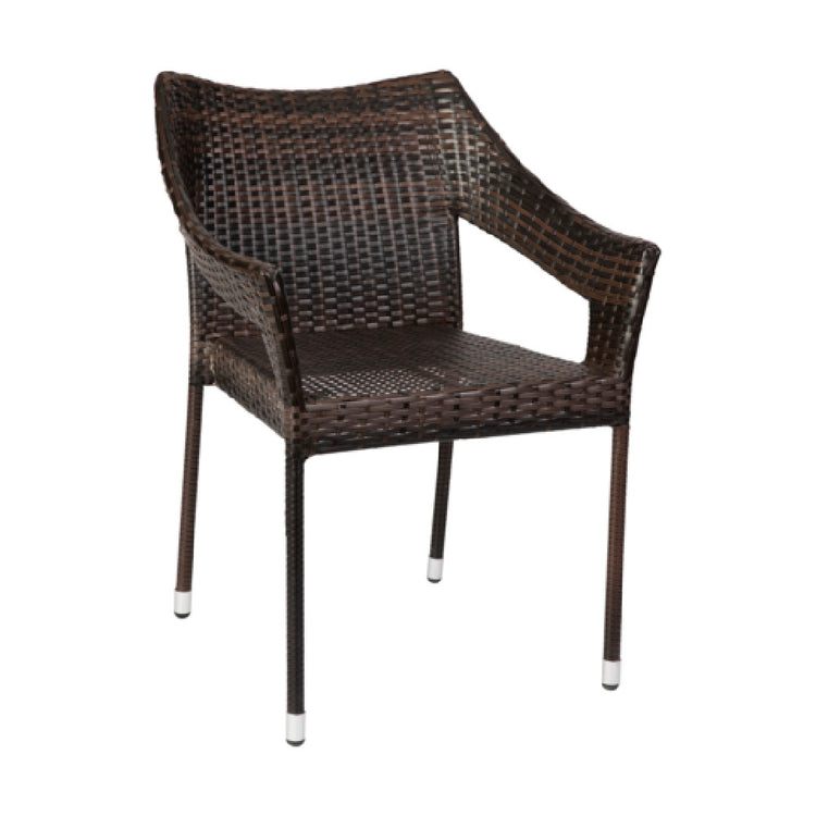 The Flash Furniture TT-TT02-ESP-GG Ethan Patio Stacking Chair is an expertly crafted seating solution with a 300 lb weight capacity, designed to accommodate various needs across different market segments. This chair is constructed with durable PE rattan wicker, ensuring longevity and a classic aesthetic suitable for both indoor and outdoor environments. Its curved back and armrests provide enhanced comfort, making it an appealing choice for residential patios and commercial outdoor spaces alike. The chair is supported by a robust steel frame, which offers stability and strength. Floor glides are incorporated into the design, protecting surfaces from scratches and facilitating easy movement. One of the standout features of the Ethan Patio Stacking Chair is its impressive space-saving capability; it can be stacked up to 22 chairs high, making it a practical choice for businesses that require efficient storage solutions. Available in an elegant espresso finish, the chair requires no assembly, allowing for immediate use upon delivery. This combination of functionality, style, and convenience makes the Flash Furniture TT-TT02-ESP-GG Ethan Patio Stacking Chair a versatile and valuable asset for both personal and professional settings.