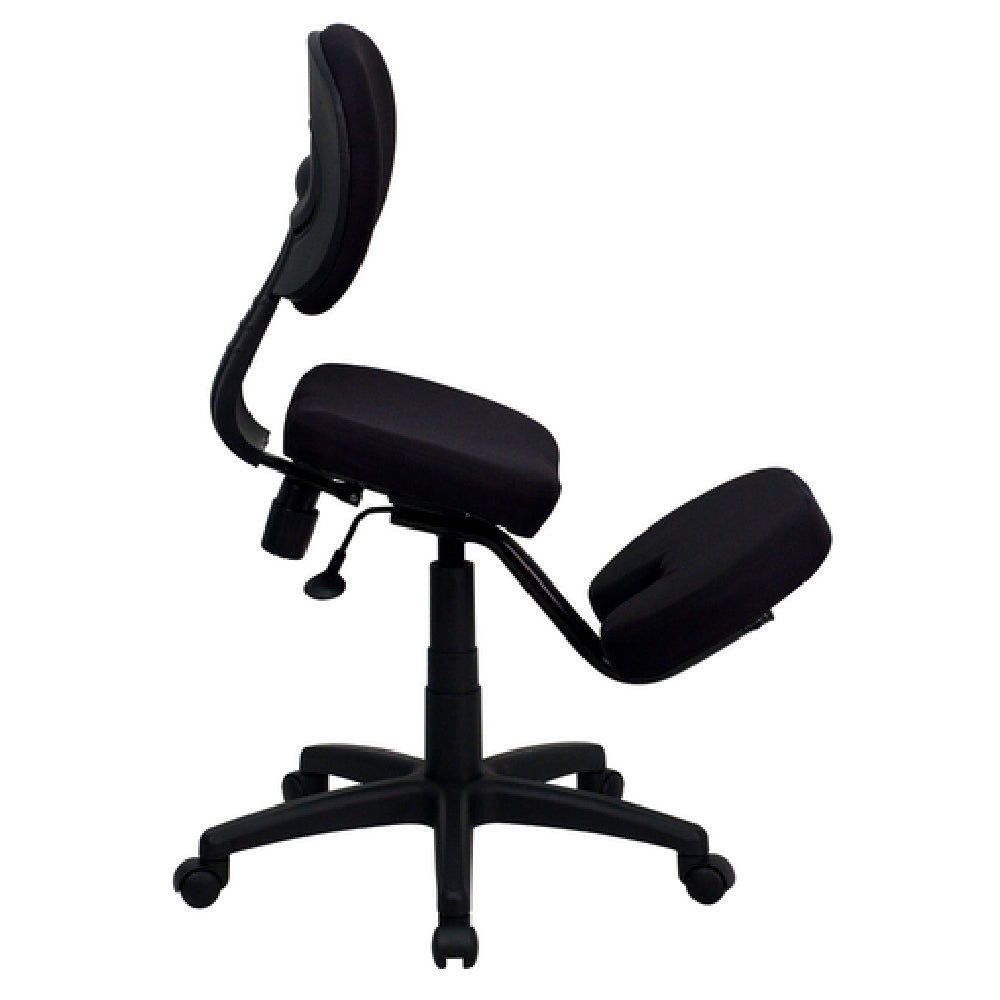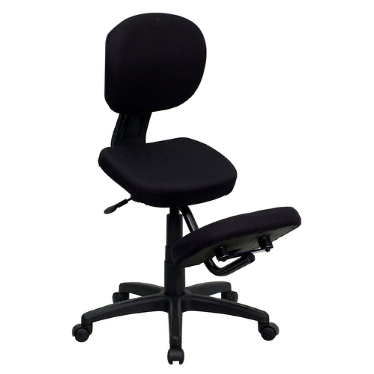The Flash Furniture WL-1430-GG Ergonomic Kneeling Posture Task Chair - 38" to 42" Adjustable Height - is engineered for individuals seeking a chair that promotes better posture and comfort in various professional settings. This chair features a robust 250 lb. weight capacity, ensuring durability and stability for users. It includes a 15-1/2"W x 11-1/2"D x 2-1/2"H padded knee rest, designed to alleviate pressure on the lower back and improve posture by encouraging an open body angle. The padded seat and back are upholstered in fabric, providing both comfort and breathability. Constructed with CA117 fire retardant foam, the chair meets safety standards, adding an extra level of protection in workplace environments. The chair's mobility is enhanced with a heavy-duty black nylon base and dual wheel casters, allowing for easy movement across different floor surfaces. Additionally, the chair requires assembly, and in-stock items typically ship within 24 hours, offering quick availability. This posture task chair is an ideal solution for offices, creative studios, and healthcare facilities, where ergonomic seating solutions are vital for prolonged sitting periods.