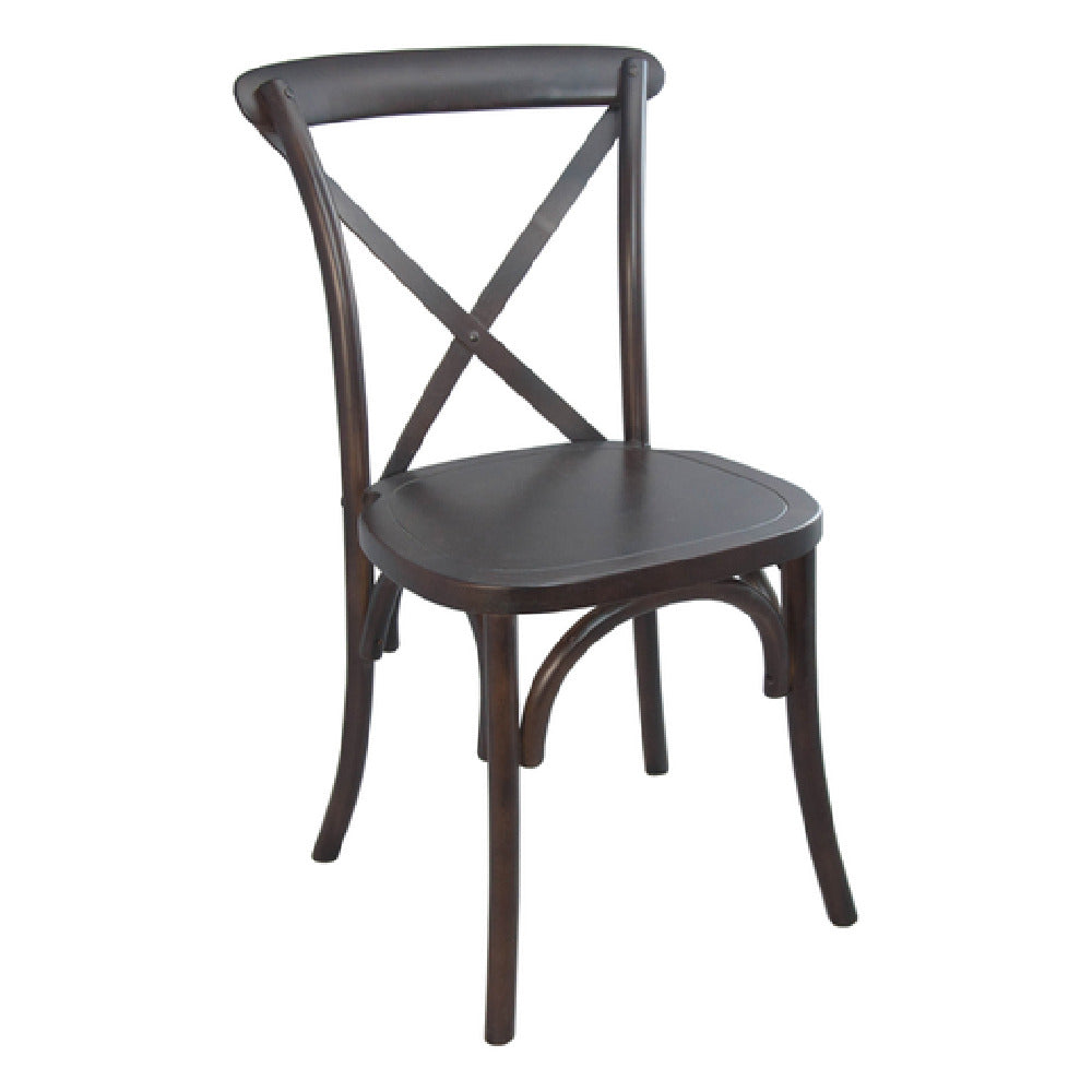 The Flash Furniture X-BACK-W Side Chair stands out with its robust 400 lb. weight capacity, making it a reliable seating option for a variety of settings. The chair features a distinctive bent X back design, offering both aesthetic appeal and structural support. It is constructed from elmwood with a rich walnut finish, ensuring durability and an attractive appearance suitable for indoor use only. This side chair is stackable up to 8 stools high, providing space-saving storage solutions for venues requiring flexible seating arrangements. An added convenience is that it ships fully assembled, ready for immediate use. Typically, in-stock items of this model are dispatched within 24 hours, ensuring quick availability for events or establishments needing prompt furniture solutions. With its combination of strength, elegance, and practicality, the Flash Furniture X-BACK-W Side Chair is an exceptional choice for restaurants, event spaces, and other indoor venues seeking durable and stylish seating.