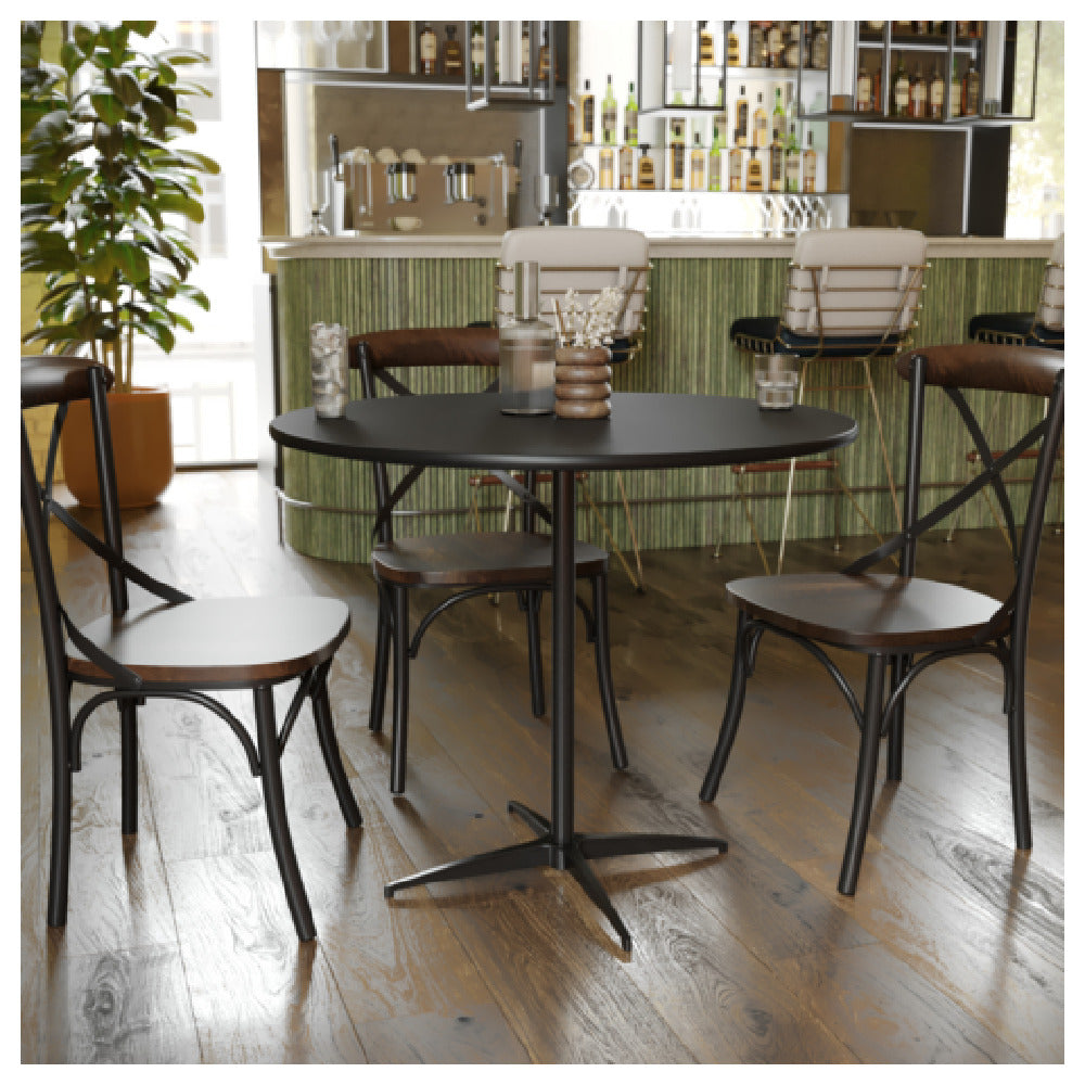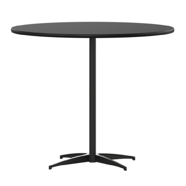 The Flash Furniture XA-36-COTA-BK-GG Lars Cocktail Table 36" Dia. Round is a versatile piece designed for both functionality and style, catering to a variety of market segments within the hospitality and event planning industries. This round cocktail table features a 36-inch diameter top, providing ample surface space while maintaining a sleek, compact profile. The table is constructed from durable wood, ensuring longevity and a premium feel. Available in a sophisticated black finish, it complements a wide range of decor styles, making it a flexible choice for various settings. A unique aspect of the XA-36-COTA-BK-GG model is its dual-height adjustability, featuring both 30-inch and 42-inch columns. This allows users to easily adapt the table to different event requirements, whether for seated gatherings or standing receptions. The Flash Furniture Lars Cocktail Table is particularly beneficial for venues that require rapid setup and teardown, as its lightweight construction facilitates easy transport and repositioning. The combination of size, adjustability, and aesthetic appeal makes it an ideal selection for hotels, banquet halls, and conference centers looking to enhance their guest experience with versatile and elegant furniture solutions.