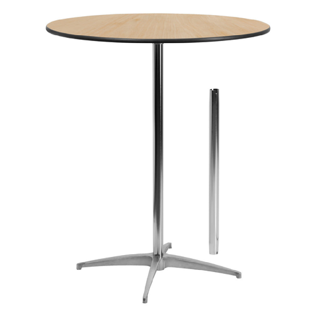 The Flash Furniture XA-36-COTA-GG Cocktail/Pub Table is a versatile piece designed for both indoor and outdoor commercial use, ensuring adaptability across various environments. With dimensions of 36 inches in diameter and an adjustable height ranging from 30 inches to 42 inches, this table caters to diverse seating arrangements and event settings. The round birchwood top is fortified with a quadruple-coated polyurethane varnish, providing a durable and attractive surface that withstands heavy use. Meanwhile, the double-coated polyurethane varnish on the bottom ensures added protection and longevity. The black PVC edge adds a sleek finish, complementing the sturdy steel column with a chrome finish. The aluminum base is equipped with self-leveling floor glides to ensure stability on uneven surfaces, making it a practical choice for varying floor types. Assembly is required, but this feature allows for easy transport and setup, making it an excellent option for restaurants, bars, or event venues that require flexible furniture solutions. With most in-stock items shipping within 24 hours, the Flash Furniture XA-36-COTA-GG Cocktail/Pub Table is an efficient and reliable addition to any commercial setting.