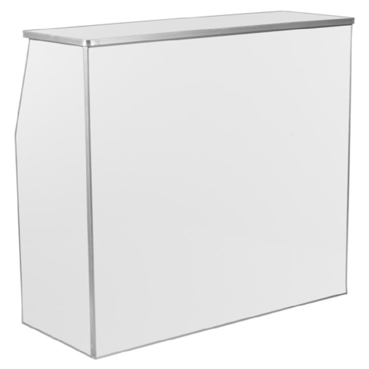 The Flash Furniture XA-BAR-48-WH-GG Portable Bar is designed with versatility and practicality in mind, featuring dimensions of 47-3/4"W x 19-1/2"D x 42-3/4"H. This foldable bar is an ideal solution for events and hospitality settings where mobility and space efficiency are crucial. With its removable aluminum top, the bar provides durability and ease of maintenance, ensuring it withstands the rigors of frequent use. The white laminate finish on the front, sides, and back offers a sleek and modern aesthetic that complements various environments, while the aluminum trim adds a touch of elegance. The combination of these materials not only enhances the bar's visual appeal but also ensures a lightweight design for easy transportation and setup. Typically shipping within 24 hours, this portable bar is perfect for businesses that require quick deployment and flexibility. Whether utilized in catering events, hotel functions, or private celebrations, the Flash Furniture XA-BAR-48-WH-GG Portable Bar meets diverse demands across different market segments with its functional design and reliable construction.