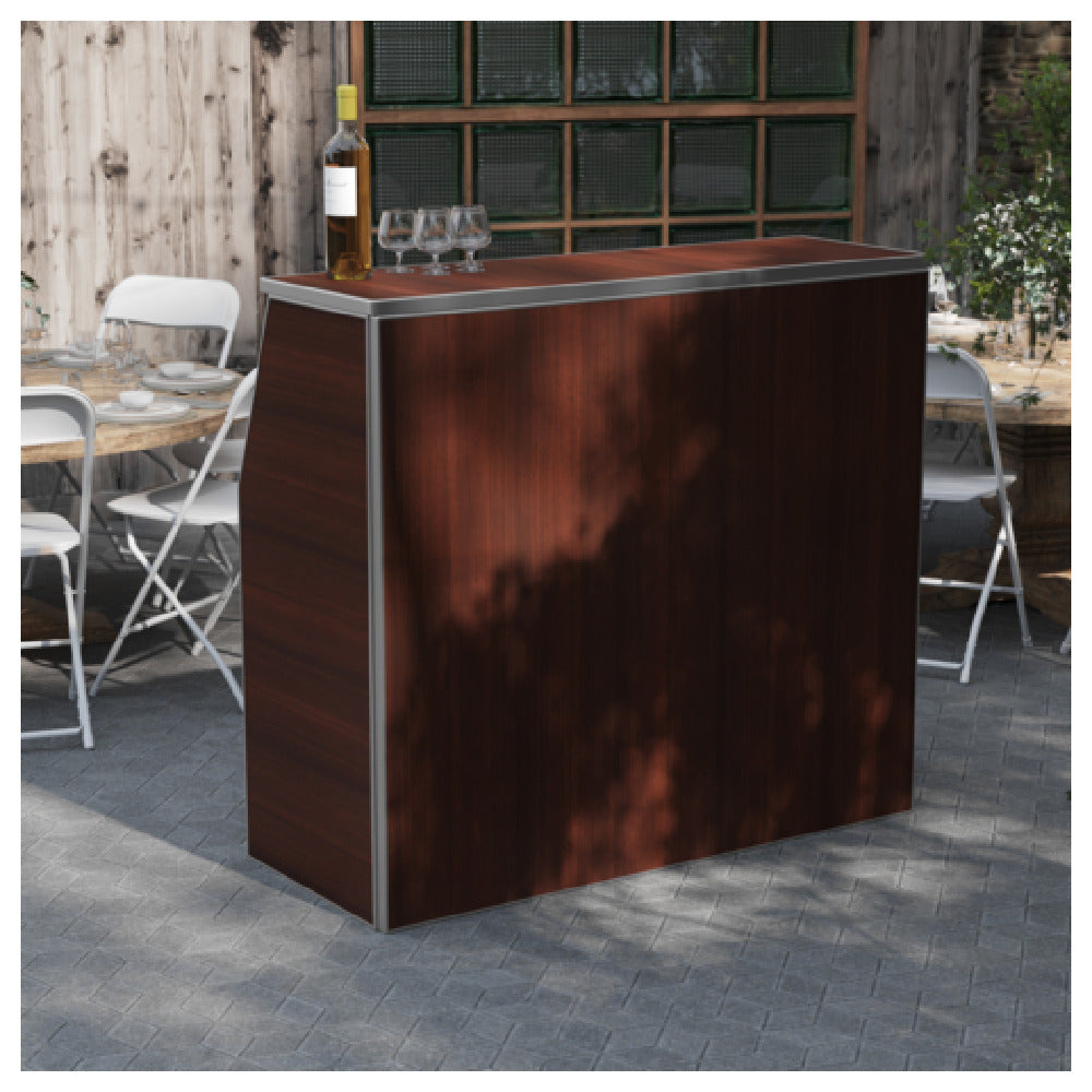 The Flash Furniture XA-BAR-48-WLT-GG Amara Folding Bar Table is a versatile and portable solution for various settings. Measuring 4 feet in length, this table is crafted with a durable laminate surface, featuring a sophisticated walnut woodgrain finish that enhances its aesthetic appeal. This design makes it a perfect choice for businesses in the hospitality and event planning industries, where space efficiency and quick setup are essential. The folding mechanism ensures easy storage and transport, allowing it to be conveniently used for both indoor and outdoor events. Its sturdy construction promises stability, making it suitable for different market segments such as catering services, banquet halls, and personal home use. The combination of its portability and elegant design provides a practical and stylish option for those looking to optimize their space while maintaining a professional appearance. This table not only meets functional requirements but also adds a touch of elegance to any event setup, making it an invaluable asset for professionals in the industry.