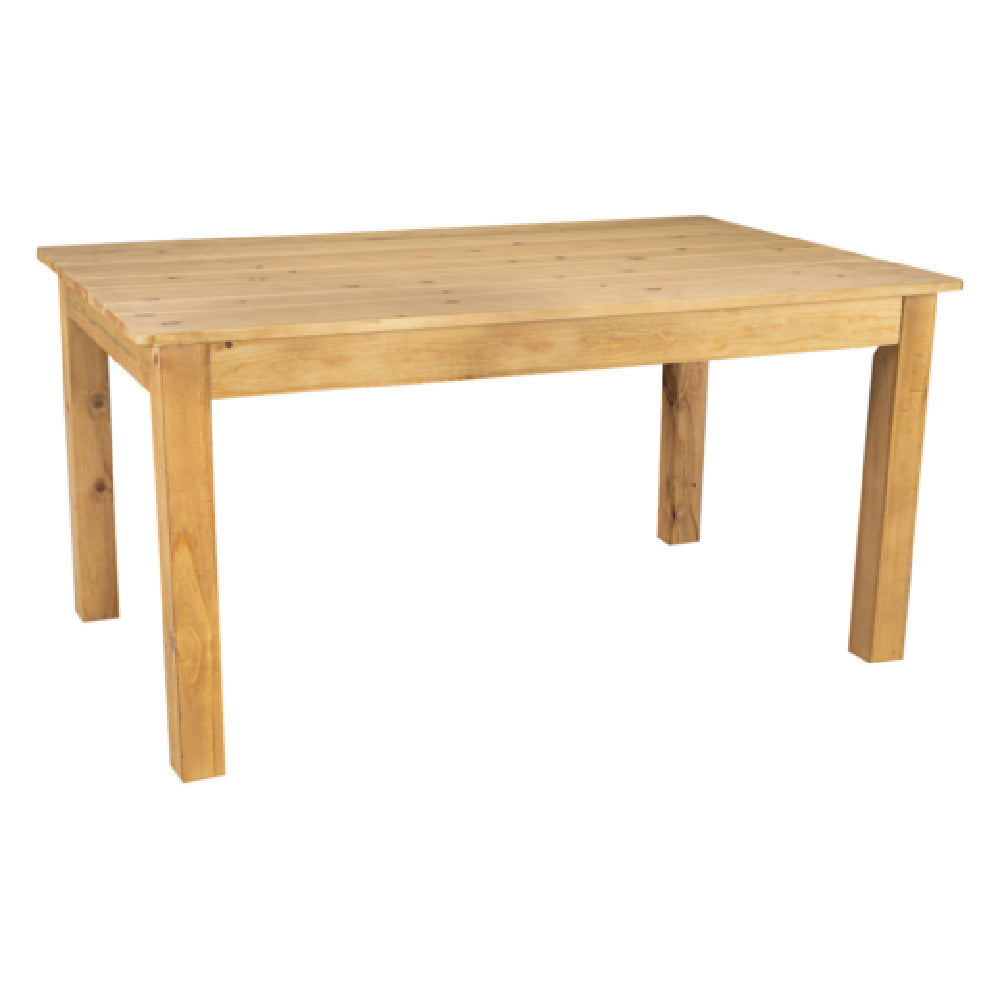 The Flash Furniture XA-F-60X38-LN-GG Hercules Series Farm Dining Table is a finely crafted piece of furniture that is designed to offer both style and functionality. With dimensions of 60"W x 38"D x 29-1/2"H, this rectangular dining table is an excellent addition to any dining area, providing ample space for family meals or gatherings. The table features a plank top with a 1" edge and a 4" apron, lending a rustic charm that can complement a wide range of interior décors. Constructed from solid pine, it boasts durability and sturdiness, making it a reliable choice for everyday use. The table's rustic light natural finish enhances its aesthetic appeal, adding warmth and character to your space. Supported by square legs, it seats up to 6 adults comfortably, making it suitable for both residential and commercial settings. This table is particularly beneficial for those in the hospitality industry, such as restaurants or cafes, that desire a blend of rustic elegance and practicality. The Flash Furniture XA-F-60X38-LN-GG Hercules Series Farm Dining Table offers a unique value proposition by combining robust construction with a timeless design, making it a versatile option for a variety of market segments.