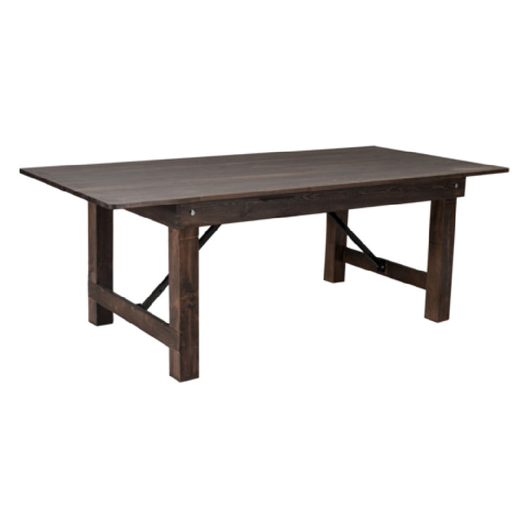 The Flash Furniture XA-F-84X40-MG-GG Hercules Series Farm Table 84"W x 40"D x 30"H is an elegantly crafted piece designed for both commercial and residential settings. With its 7/8" thick antique rustic mahogany plank top, this table offers a classic and refined aesthetic. Support and stability are ensured through 4" thick braces underneath and 3-1/2" thick square locking legs, further reinforced by 16 ga. white steel posts. This solid pine construction is built to seat up to 6 adults comfortably, making it ideal for social gatherings or business meetings. The table's design is complemented by push in/push out pins and additional support braces, allowing for easy assembly and disassembly while ensuring sturdiness. This product distinguishes itself with its robust construction and versatile functionality, catering to a diverse range of markets including hospitality, event planning, and home furnishing. Its availability for quick shipment, typically within 24 hours, further adds to its appeal for those in need of reliable, high-quality furniture solutions in a timely manner.