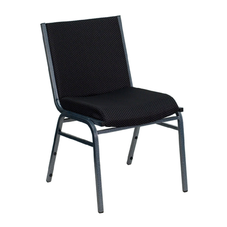 The Flash Furniture XU-60153-BK-GG Hercules Series Heavy Duty Stacking Chair is engineered to support a remarkable weight capacity of 550 pounds, making it an exceptional choice for a variety of rigorous environments. It features dot pattern polyester upholstery, ensuring both durability and aesthetic appeal. The chair is built with a 5/8-inch thick plywood seat and contoured cushions, delivering superior comfort and support. Additionally, it incorporates 3-inch thick CA117 fire retardant foam for enhanced safety standards. Structural integrity is reinforced with stretcher bars, while a ganging bracket allows for secure alignment in grouped settings. The chair’s 18-gauge 3/4-inch square tubular steel frame is finished with a silver vein powder coating, providing a sleek and resilient surface. Plastic bumper guards protect the frame against wear, and plastic floor glides ensure smooth movement without floor damage. Designed to optimize space utilization, these chairs can be stacked up to 12 high. Available in black, this chair is typically ready for dispatch within 24 hours of order placement, meeting urgent needs efficiently. Catering to markets such as hospitality, event planning, and educational facilities, the Hercules Series chair offers a unique blend of robustness and convenience.