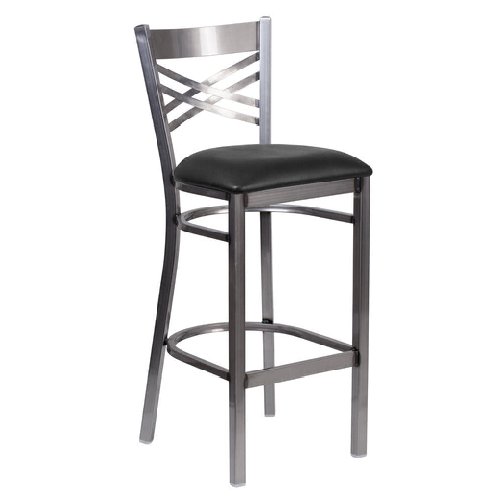 Flash Furniture XU-6F8B-CLR-BAR-BLKV-GG Hercules Series Restaurant Bar Stool Metal X Back With Clear Coat Finish