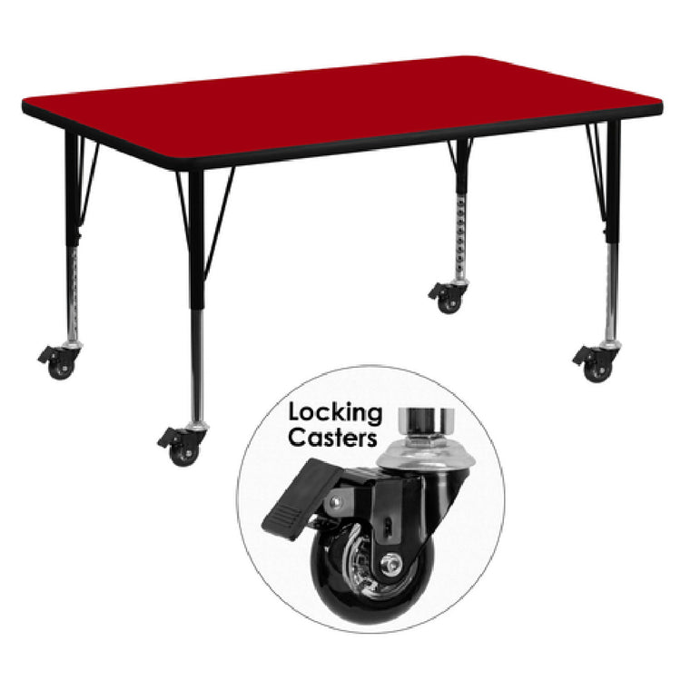 Flash Furniture XU-A2448-REC-RED-T-P-CAS-GG Activity Table 48"W X 24"D X 17-2/5" To 25-2/5" Adjustable Height