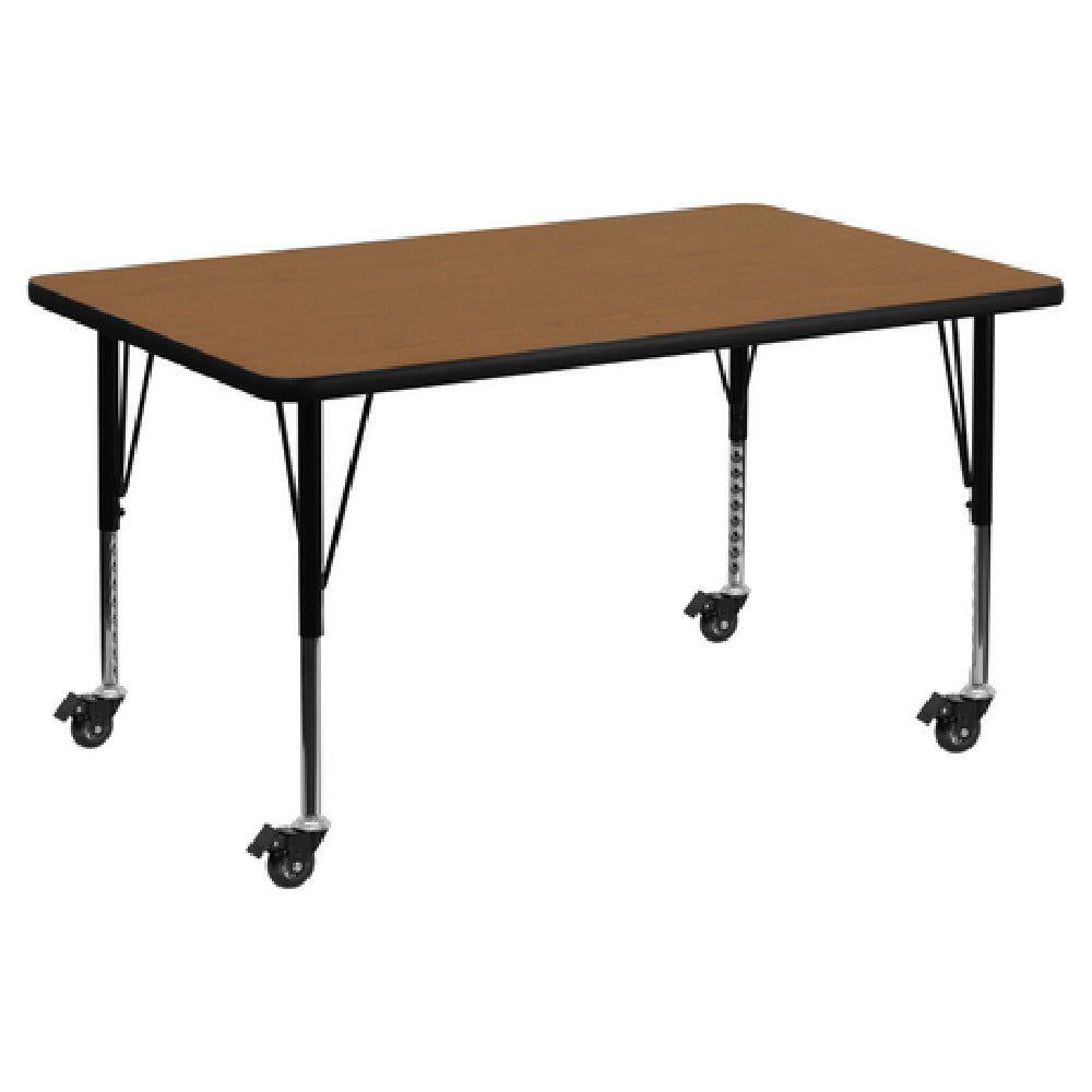 Flash Furniture XU-A3048-REC-OAK-T-P-CAS-GG Activity Table 48"W X 30"D X 17-2/5" To 25-2/5" Adjustable Height