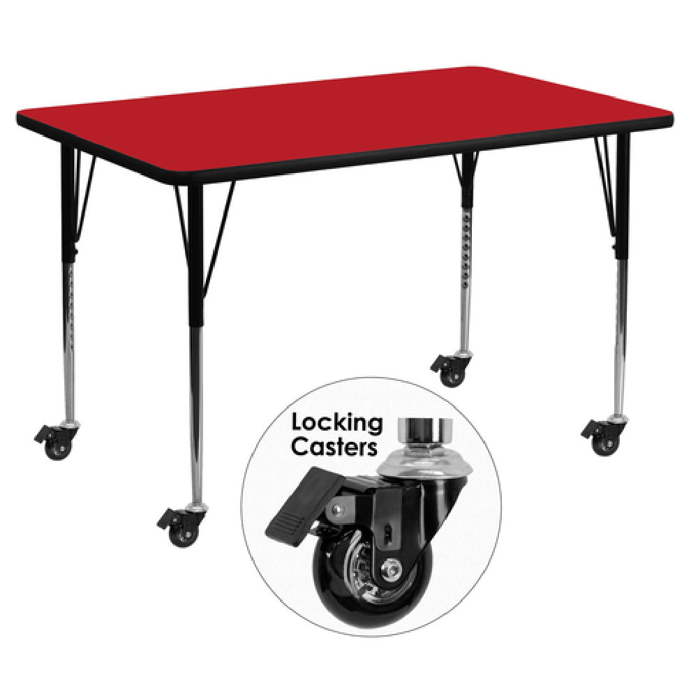 Flash Furniture XU-A3060-REC-RED-H-A-CAS-GG Activity Table 60"W X 30"D X 22-2/5" To 30-1/2" Adjustable Height