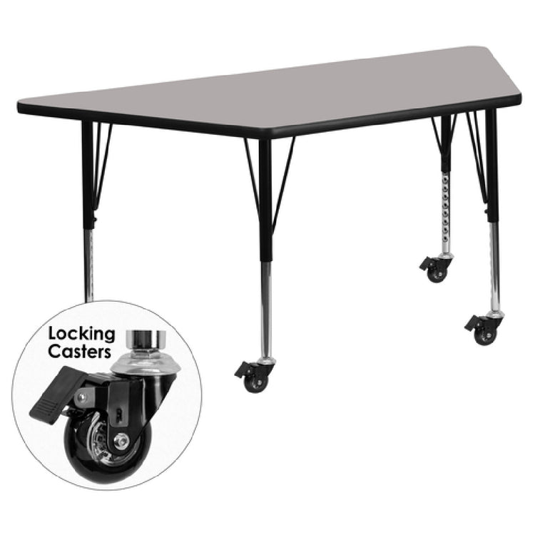 Flash Furniture XU-A3060-TRAP-GY-H-P-CAS-GG Activity Table 57-1/2"W X 26-1/4"D X 17-1/2" To 25-1/2" Adjustable Height