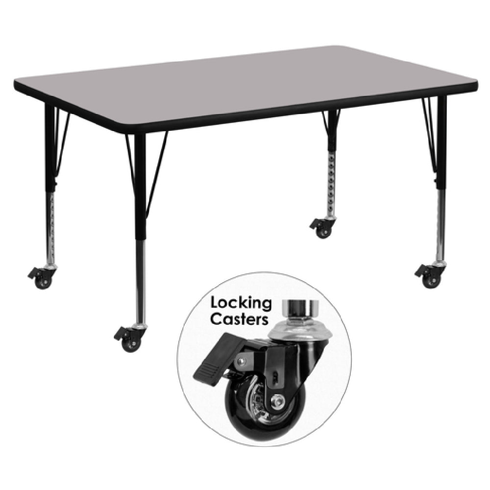 Flash Furniture XU-A3672-REC-GY-T-P-CAS-GG Activity Table 72"W X 36"D X 17-2/5" To 25-2/5" Adjustable Height