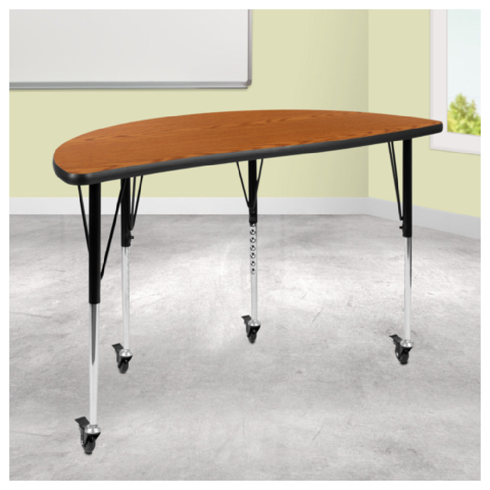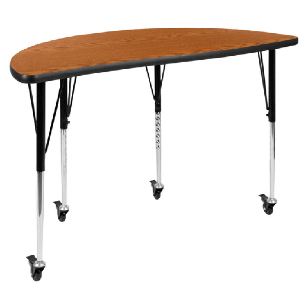 Flash Furniture XU-A48-HCIRC-OAK-T-A-CAS-GG Activity Table 47-1/2"W X 24"D X 22" To 30" Adjustable Height