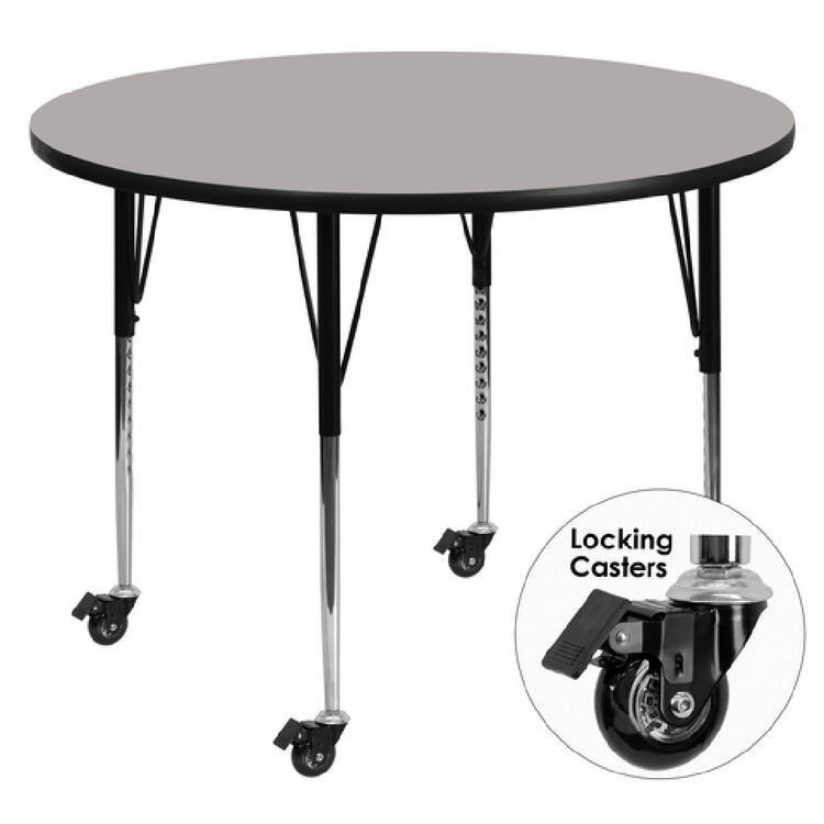 Flash Furniture XU-A48-RND-GY-H-A-CAS-GG Activity Table 48" Dia. X 22-2/5" To 30-1/2" Adjustable Height
