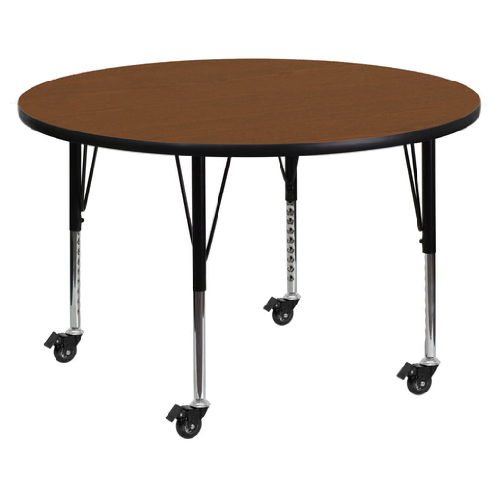 Flash Furniture XU-A48-RND-OAK-H-P-CAS-GG Activity Table 48" Dia. X 17-1/2" To 25-1/2" Adjustable Height