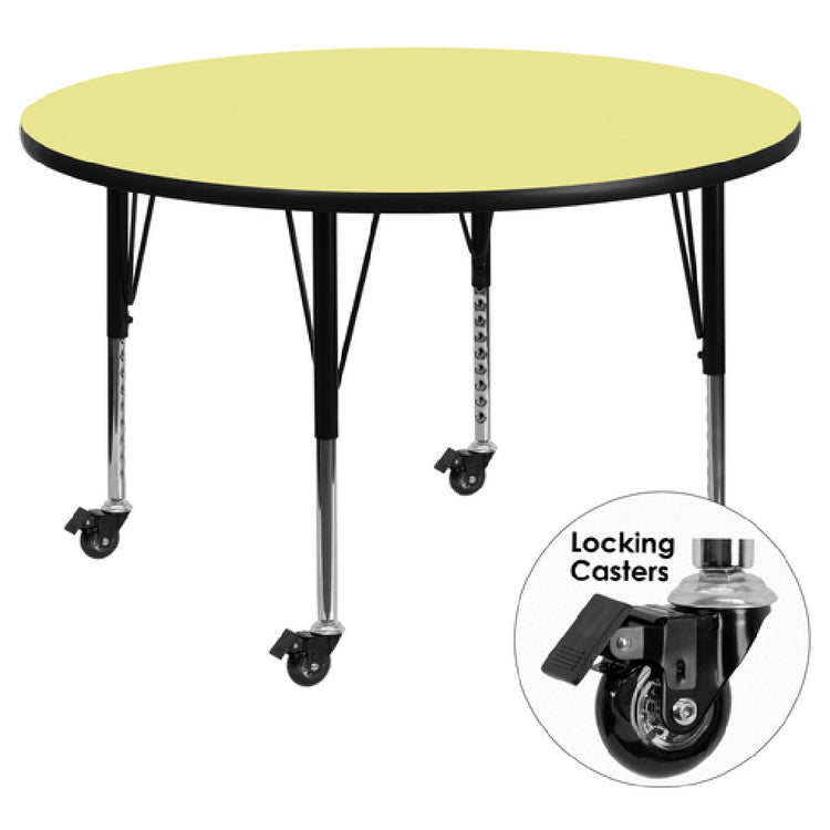 Flash Furniture XU-A48-RND-YEL-T-P-CAS-GG Activity Table 48" Dia. X 17-2/5" To 25-2/5" Adjustable Height