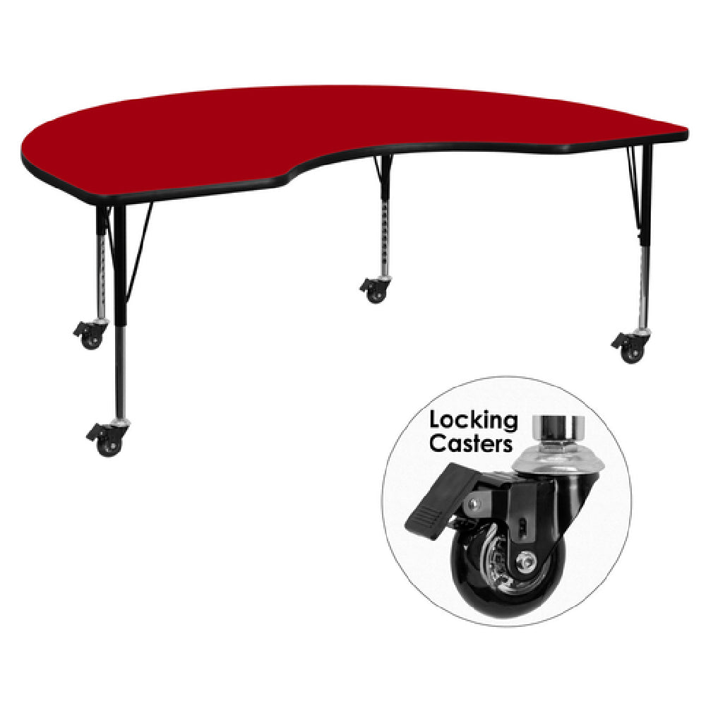 Flash Furniture XU-A4872-KIDNY-RED-T-P-CAS-GG Activity Table 72"W X 48"D X 17-2/5" To 25-2/5" Adjustable Height