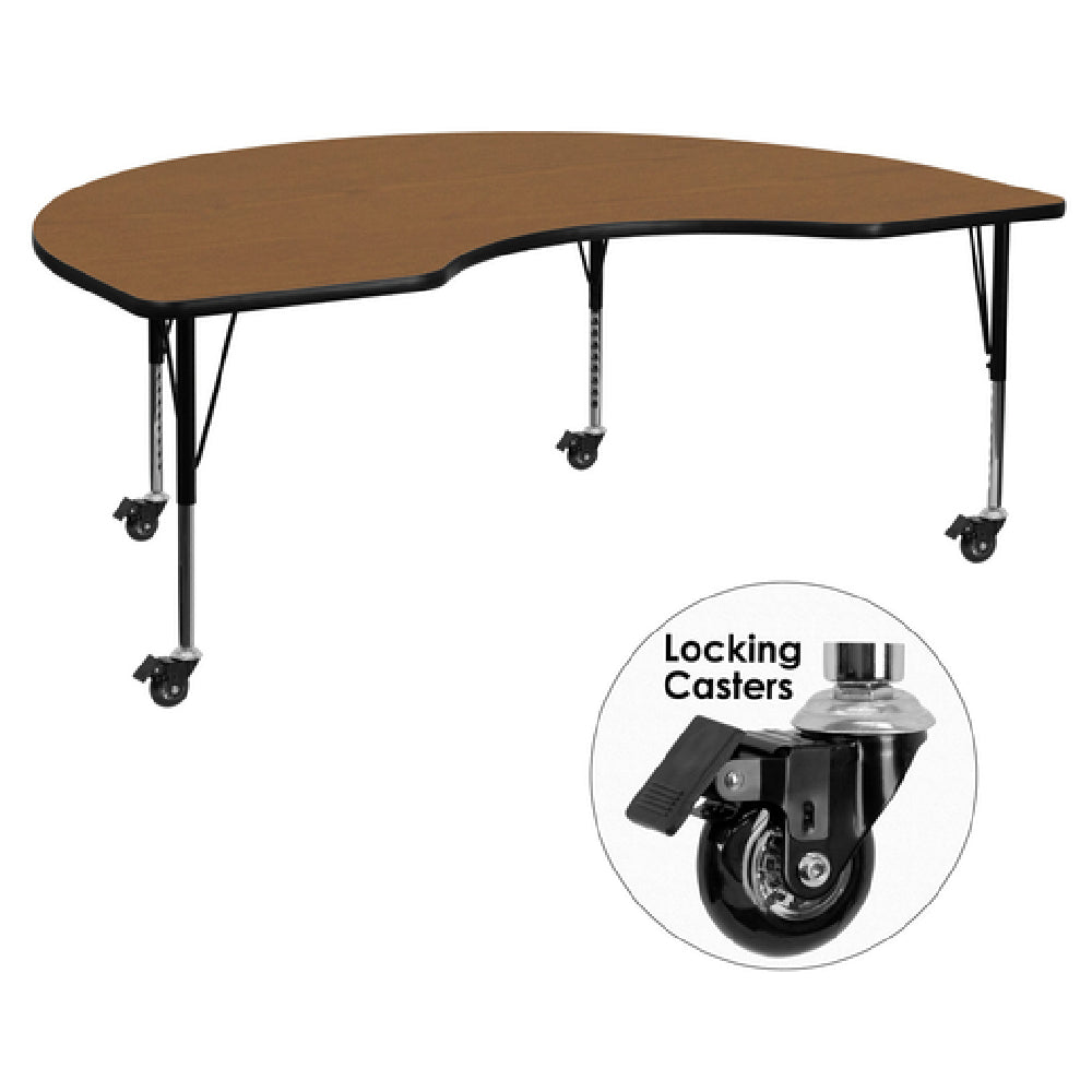 Flash Furniture XU-A4896-KIDNY-OAK-T-P-CAS-GG Activity Table 96"W X 48"D X 17-2/5" To 25-2/5" Adjustable Height