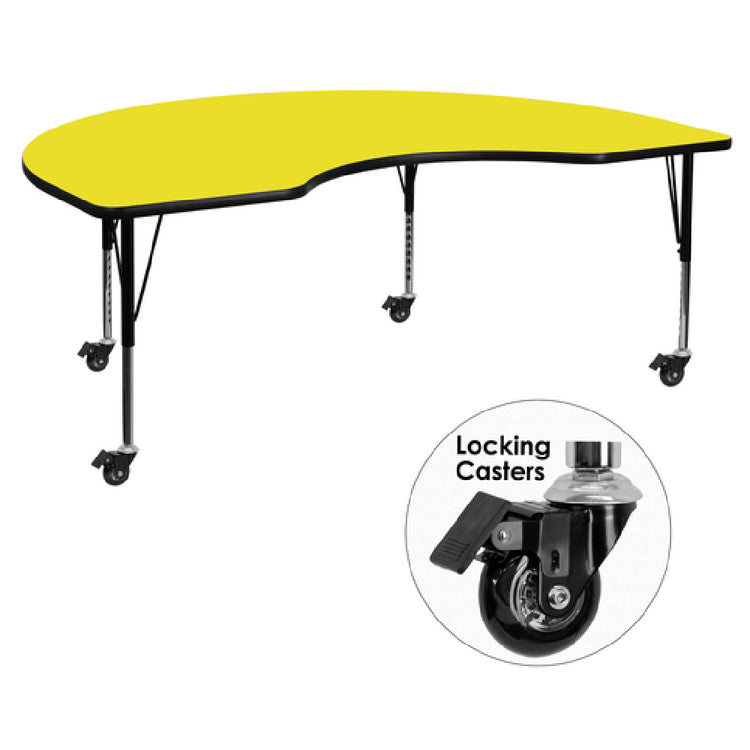Flash Furniture XU-A4896-KIDNY-YEL-H-P-CAS-GG Activity Table 96"W X 48"D X 17-1/2" To 25-1/2" Adjustable Height