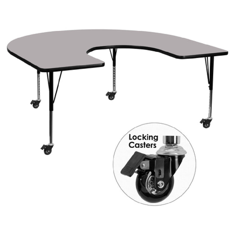 Flash Furniture XU-A6066-HRSE-GY-T-P-CAS-GG Activity Table 66"W X 60"D X 17-2/5" To 25-2/5" Adjustable Height