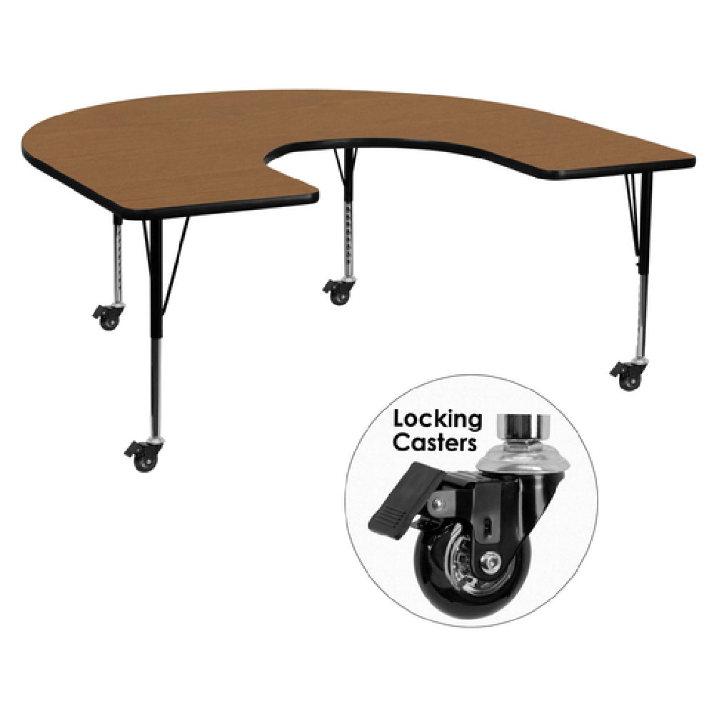 Flash Furniture XU-A6066-HRSE-OAK-T-P-CAS-GG Activity Table 66"W X 60"D X 17-2/5" To 25-2/5" Adjustable Height