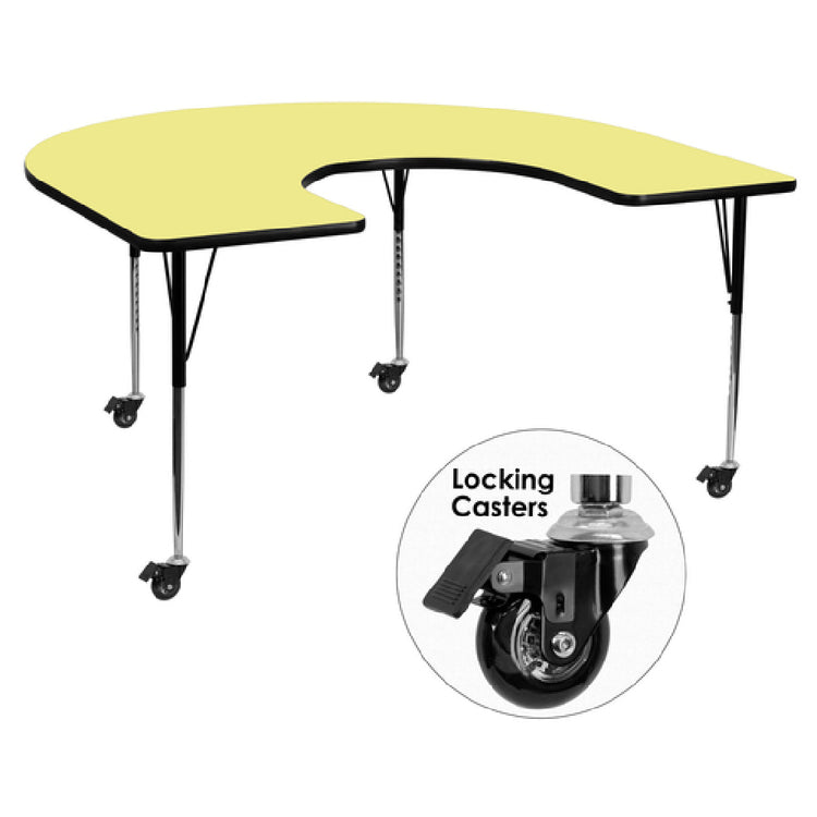 Flash Furniture XU-A6066-HRSE-YEL-T-A-CAS-GG Activity Table 66"W X 60"D X 22-1/4" To 30-2/5" Adjustable Height