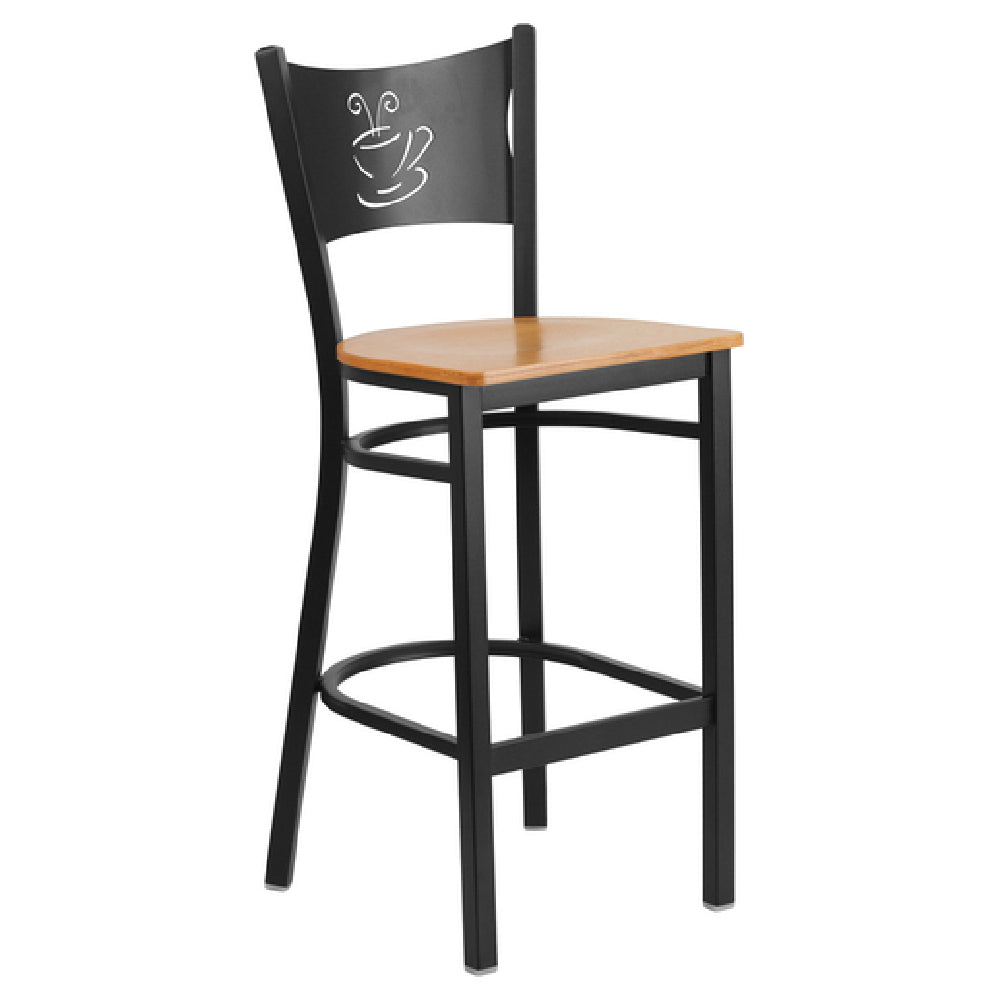 The Flash Furniture XU-DG-60114-COF-BAR-NATW-GG Hercules Series Restaurant Bar Stool is a robust seating solution designed for both commercial and versatile use. This stool features a metal back with a distinctive coffee cutout, offering a stylish design element for any setting. The seat is crafted from 5/8" thick natural finish plywood, providing durability and a classic aesthetic. Its welded joint assembly ensures structural integrity, while the inclusion of (2) curved support bars and a footrest enhances comfort and stability. Constructed with an 18 gauge steel black powder coated frame, this bar stool offers a sleek and resilient finish that can withstand the demands of frequent use. Additionally, the plastic floor glides help protect flooring surfaces from scratches, making it suitable for various environments. Designed explicitly for commercial use, this bar stool requires assembly upon purchase. With in-stock items typically shipping within 24 hours, the Flash Furniture XU-DG-60114-COF-BAR-NATW-GG Hercules Series Restaurant Bar Stool efficiently caters to the needs of restaurants, cafes, and other hospitality venues, delivering both functionality and style.