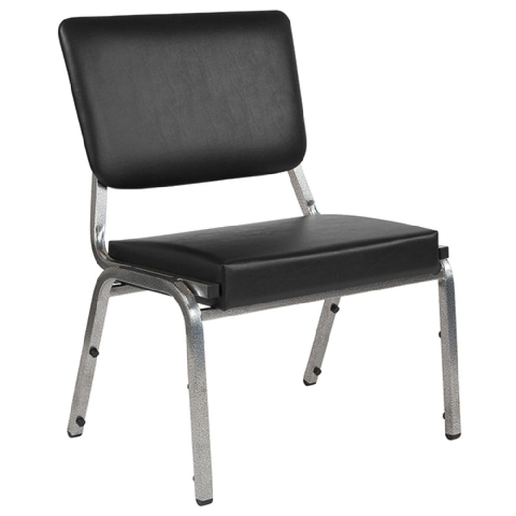 The Flash Furniture XU-DG-60442-660-2-BV-GG Hercules Series Bariatric Stacking Chair is a robust seating solution designed to accommodate up to 1500 lbs, making it ideal for bariatric healthcare facilities, event venues, and commercial spaces demanding durability and capacity. This chair features a plush 2-1/2" thick padded seat covered in vinyl upholstery, ensuring comfort and easy maintenance. The 3/4 open panel back enhances both style and structural support. Constructed with an 18-gauge steel frame, the chair boasts exceptional strength and stability, complemented by a silver vein frame finish that adds a sleek aesthetic touch. Safety and longevity are prioritized with CA117 fire retardant foam, plastic stacking bumper guards, and plastic floor glides, the latter of which protects flooring surfaces from damage. The chair's ability to stack up to 10 units high optimizes storage and floor space efficiency, making it suitable for dynamic environments where space is at a premium. Despite its substantial build, the chair requires assembly, allowing for convenient shipping and handling, and is generally ready for dispatch within 24 hours. This Hercules Series chair is a dependable choice for any setting requiring high-capacity seating options with a focus on strength and functionality.