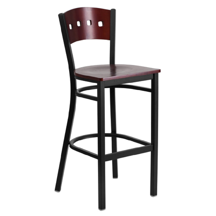 The Flash Furniture XU-DG-60515-MAH-BAR-MTL-GG Hercules Series Restaurant Bar Stool is engineered for durability and style, making it a valuable addition to commercial dining spaces. The stool features a mahogany finish plywood back, highlighted by four square cutouts, and a 5/8-inch thick mahogany finish plywood seat. This design not only enhances aesthetic appeal but also ensures long-lasting comfort and support. Structurally, the stool is built with welded joint assembly and two curved support bars, offering exceptional stability. The integrated footrest adds an extra layer of comfort for patrons. Constructed with an 18-gauge steel frame, coated in black powder for added durability, the stool is designed to withstand the rigors of commercial use. The base is fitted with plastic floor glides, safeguarding floors from scratches and making repositioning hassle-free. Although assembly is required, the stool ships within 24 hours for in-stock items, ensuring quick and efficient delivery. The Flash Furniture Hercules Series Bar Stool is ideal for restaurants, bars, and cafes that require robust furniture solutions without compromising on style. Its combination of durable materials and sophisticated design makes it an attractive choice for diverse market segments within the hospitality industry.
