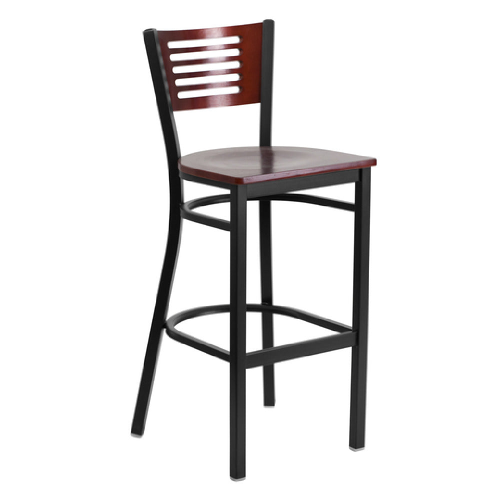 The Flash Furniture XU-DG-6H1B-MAH-BAR-MTL-GG Hercules Series Restaurant Bar Stool is a meticulously engineered seating solution tailored for commercial environments. This stool features a slotted mahogany finish plywood back and a 5/8-inch thick mahogany finish plywood seat, ensuring both aesthetic appeal and durability. The stool's structure is built for robustness with a welded joint assembly complemented by two curved support bars and a footrest for enhanced comfort. Constructed with an 18-gauge steel black powder-coated frame, this bar stool offers excellent stability and a sleek appearance. Plastic floor glides are integrated to facilitate smooth movement and protect flooring surfaces. Designed to meet the demands of restaurant settings, this stool requires assembly, allowing for efficient shipping and handling. Its durable construction and classic design make it a versatile addition to a variety of commercial spaces, from trendy bars to upscale eateries. In-stock items typically ship within 24 hours, ensuring prompt availability for immediate needs. With its blend of style and functionality, the Flash Furniture Hercules Series Restaurant Bar Stool is an ideal choice for establishments seeking reliable and attractive seating options.
