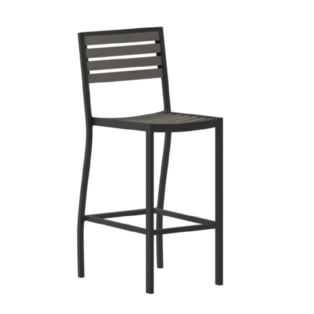 The Flash Furniture XU-DG-HW6036B-GY-GG Lark Bar Stool is a robust seating option designed for durability and style in outdoor environments. With a weight capacity of 300 lbs, it caters to a wide range of users, ensuring stability and comfort. The stool features a slat pattern back and seat, crafted from gray wash poly resin faux wood, providing a sleek, modern aesthetic that complements various outdoor settings. Its powder-coated aluminum frame enhances durability, protecting against rust and corrosion, which is ideal for long-term outdoor use. The integrated footrest adds an extra layer of comfort, making it suitable for extended seating periods. Designed with practicality in mind, the stool is equipped with floor glides, which facilitate smooth movement and protect flooring from scratches and damage. This product arrives fully assembled, offering convenience right out of the box. The Flash Furniture Lark Bar Stool is an excellent choice for both residential and commercial outdoor spaces, blending functionality with a stylish design. Its thoughtful construction ensures it meets the demands of diverse market segments, from homeowners looking to elevate their patio experience to businesses seeking reliable outdoor seating solutions.