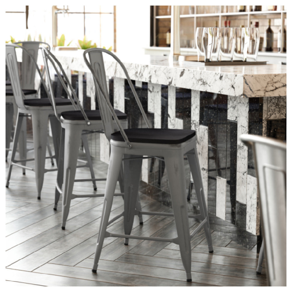 Flash Furniture XU-DG-TP001B-24-PL1B-GG Lincoln Bar Stool 24" Seat Height 500 Lb. Weight Capacity