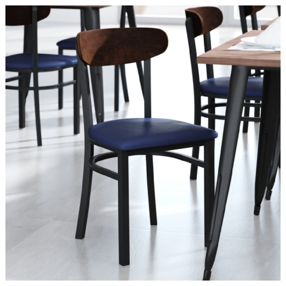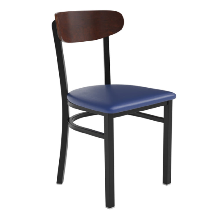 Flash Furniture XU-DG6V5BLV-WAL-GG Wright Dining Chair 500 Lb. Weight Capacity is a robust seating solution engineered for a wide range of environments requiring both style and durability. This chair boasts a substantial weight capacity of 500 pounds, catering to a diverse clientele and ensuring long-term usability. The chair is designed with a blue vinyl upholstered seat that not only adds a touch of elegance but also offers easy maintenance and comfort. The wooden boomerang back, complemented by a walnut finish, provides aesthetic appeal and ergonomic support, making it suitable for both modern and classic dining settings. Its black steel frame enhances durability, while the fixed floor glides ensure stability and protect flooring surfaces. This chair is versatile, fitting seamlessly into restaurants, cafes, or home dining areas. Assembly is required, allowing for easy transport and setup. The combination of materials and design elements make the Flash Furniture Wright Dining Chair a versatile and practical choice for various market segments looking for functional yet stylish seating options.