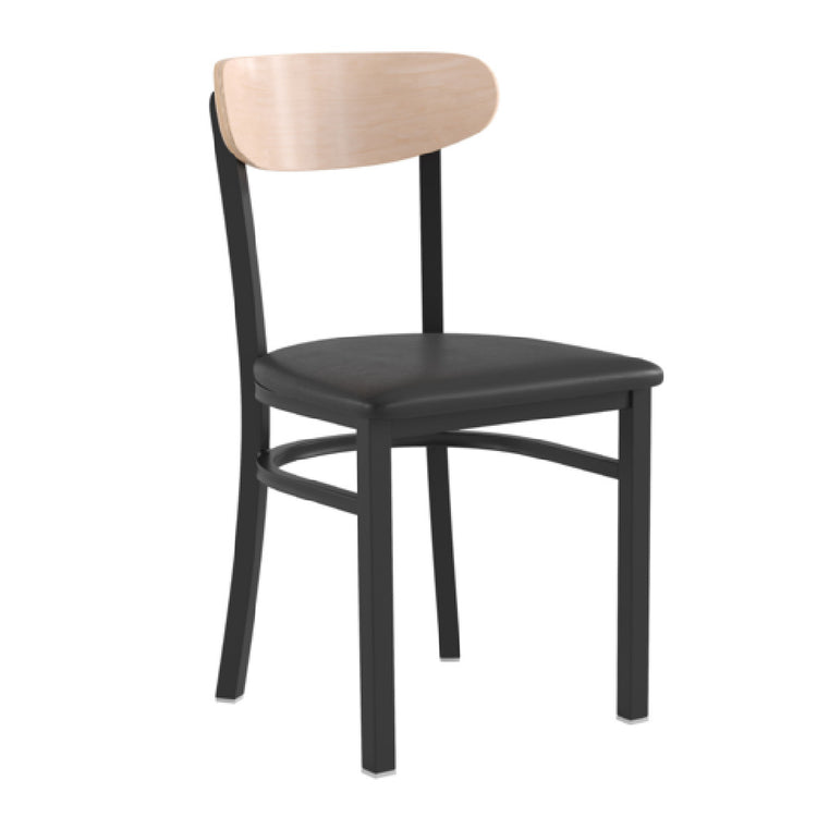 The Flash Furniture XU-DG6V5BV-NAT-GG Wright Dining Chair is a distinguished seating option renowned for its robust 500 lb. weight capacity, making it suitable for a wide range of applications from personal use to commercial dining environments. This chair features a black vinyl upholstered seat, providing both comfort and durability. The design is accentuated by its wooden boomerang back, which offers an appealing aesthetic while ensuring support. Its black steel frame enhances the chair's strength and stability, making it a reliable choice for high-traffic areas. The fixed floor glides are designed to protect flooring surfaces and facilitate easy movement, contributing to the chair's practicality in different settings. Additionally, the natural birch finish adds a touch of elegance, making it a versatile piece that can complement various interior decors. Assembly is required, allowing for convenient transportation and customization upon delivery. Overall, the Flash Furniture XU-DG6V5BV-NAT-GG Wright Dining Chair is a thoughtfully designed piece that combines functionality, style, and durability, meeting the diverse needs of different market segments within the dining industry.