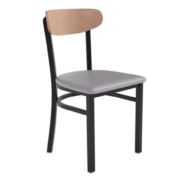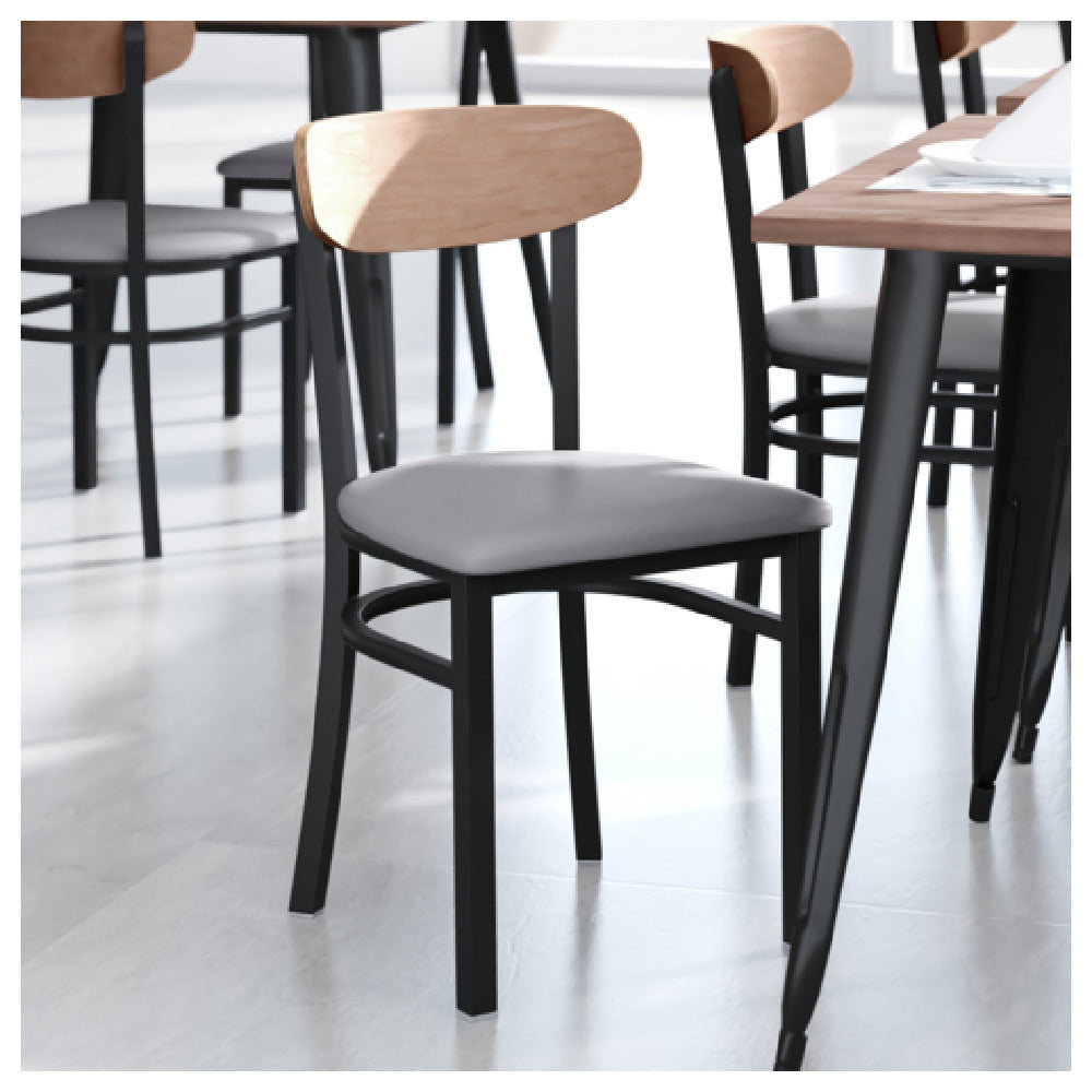 The Flash Furniture XU-DG6V5GYV-NAT-GG Wright Dining Chair is a versatile seating solution designed to accommodate a wide range of users with its impressive 500 lb. weight capacity. This chair features a gray vinyl upholstered seat, ensuring comfort and durability for both residential and commercial settings. The wooden boomerang back adds a touch of elegance and ergonomic support, making it suitable for long hours of seating in dining rooms, restaurants, or office waiting areas. Built with a black steel frame, this chair combines strength and stability with a modern aesthetic. The fixed floor glides protect your flooring from scratches and scuffs, making it ideal for high-traffic environments. Its natural birch finish adds a warm, inviting look that complements various interior styles. The Wright Dining Chair requires assembly, allowing for efficient transportation and storage. This chair's unique combination of style, comfort, and robustness makes it an excellent choice for hospitality venues, event halls, or any setting where reliable and stylish seating is paramount.