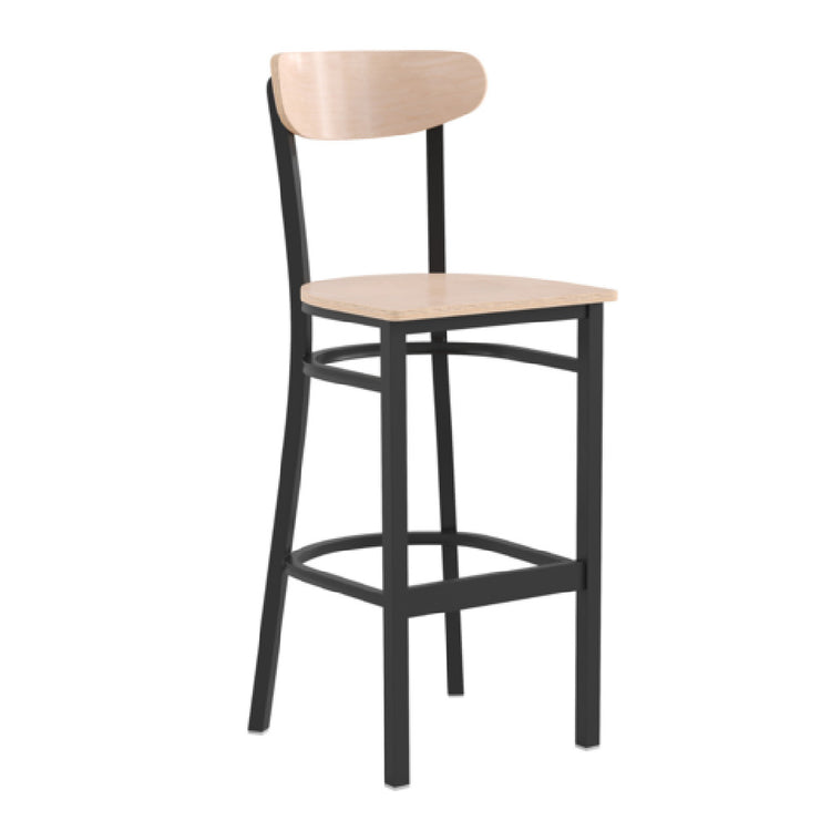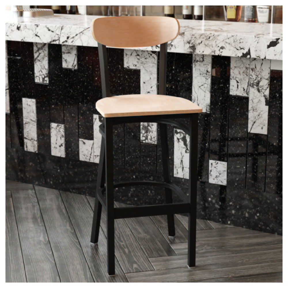 The Flash Furniture XU-DG6V6B-NAT-GG Wright Bar Stool is a meticulously crafted seating solution designed to support a remarkable weight capacity of 500 pounds. This robust bar stool features a natural birch finish that enhances its visual appeal, making it a versatile addition to various settings, from commercial bars to home kitchens. Its wooden seat is complemented by a distinctive boomerang back, providing both comfort and style. The sturdy black steel frame offers durability and stability, reinforced by a lower bracing footrest that ensures added leg support. Fixed floor glides are included, safeguarding floors from scratches while facilitating easy movement. This bar stool requires assembly, allowing for efficient transportation and setup. The combination of elegant design and practical features makes the Flash Furniture Wright Bar Stool an attractive choice for a range of markets, including hospitality venues, residential use, and corporate environments where a blend of aesthetic appeal and functionality is desired. Its high weight capacity and durable construction are key selling points for customers seeking reliable and long-lasting seating solutions.