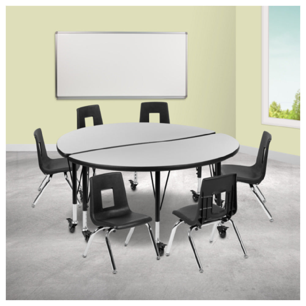 Flash Furniture XU-GRP-14CH-A48-HCIRC-GY-T-P-CAS-GG Emmy Activity Table And Chair Set - 1/Set