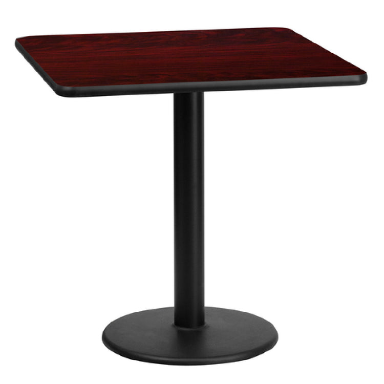 The Flash Furniture XU-MAHTB-2424-TR18-GG Table 24"W X 24"D X 31-1/8"H Dining Height is a robust and versatile dining solution designed specifically for commercial use. With its square dimensions of 24 inches by 24 inches and a height of 31-1/8 inches, this table is perfectly sized for intimate dining settings, making it an excellent choice for restaurants, cafes, and bistros. The table features a 1-1/8 inch thick MDF core with a mahogany laminate finish, offering both aesthetic appeal and durability. Its black PVC T-mold edge ensures protection against bumps and scrapes, while the pre-welded top plate enhances structural integrity. The 18-inch diameter base is supported by a 3-inch diameter cast iron column, coated with a black powder finish for added stability and resistance to wear. Assembly is required, and the table ships in three boxes, with in-stock items typically dispatching within 24 hours. This dining table seamlessly combines form and function, making it a valuable addition to any commercial dining environment looking to balance style with practicality.