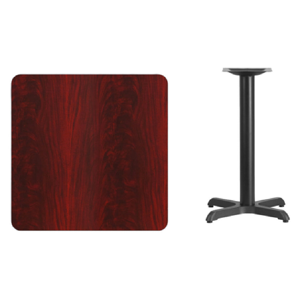 Flash Furniture XU-MAHTB-3030-T2222-GG Table 30"W X 30"D X 31-1/8"H Dining Height is a meticulously designed square table tailored for commercial use, embodying a blend of durability and aesthetic appeal. This piece boasts a 1-1/8" thick MDF core covered with a mahogany laminate finish, providing both a sophisticated look and sturdy construction. The table's black PVC T-mold edge ensures additional protection against impacts, enhancing its longevity in high-traffic environments. Supporting its robust tabletop is a pre-welded top plate and a solid 22" x 22" x-base, reinforced by a 3" diameter cast iron column finished with black powder coating for added resilience and style. Designed for ease of assembly, this table is delivered in three separate boxes and is ready for quick shipping, with in-stock items typically dispatched within 24 hours. Ideal for restaurants, cafes, and other dining establishments seeking reliable furniture solutions, this table combines practical dimensions with a polished finish, making it a versatile choice for various dining settings.